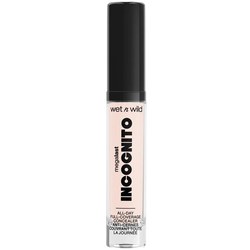 Wet n Wild MegaLast Incognito AllDay Full Coverage Concealer er beriket med nærende og fuktighetsgivende ingredienser som sheasmør, lakrisrotekstrakt og mangofrøsmør. Den er langvarig og byggbar med middels til full dekning og gir en matt finish.Nyanse: Fair Beige