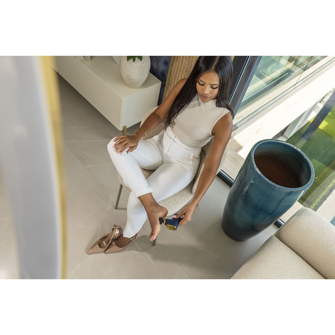 Massasjeapparatet drives av en 25W-motor som effektivt reduserer muskelspenninger, fremmer avslapning etter treningsøkter og stimulerer sirkulasjonen. Det innebygde 800mAh Li-ion-batteriet gir opptil 120 minutters trådløs drift, og enheten lades via USB-C på omtrent 180 minutter.
