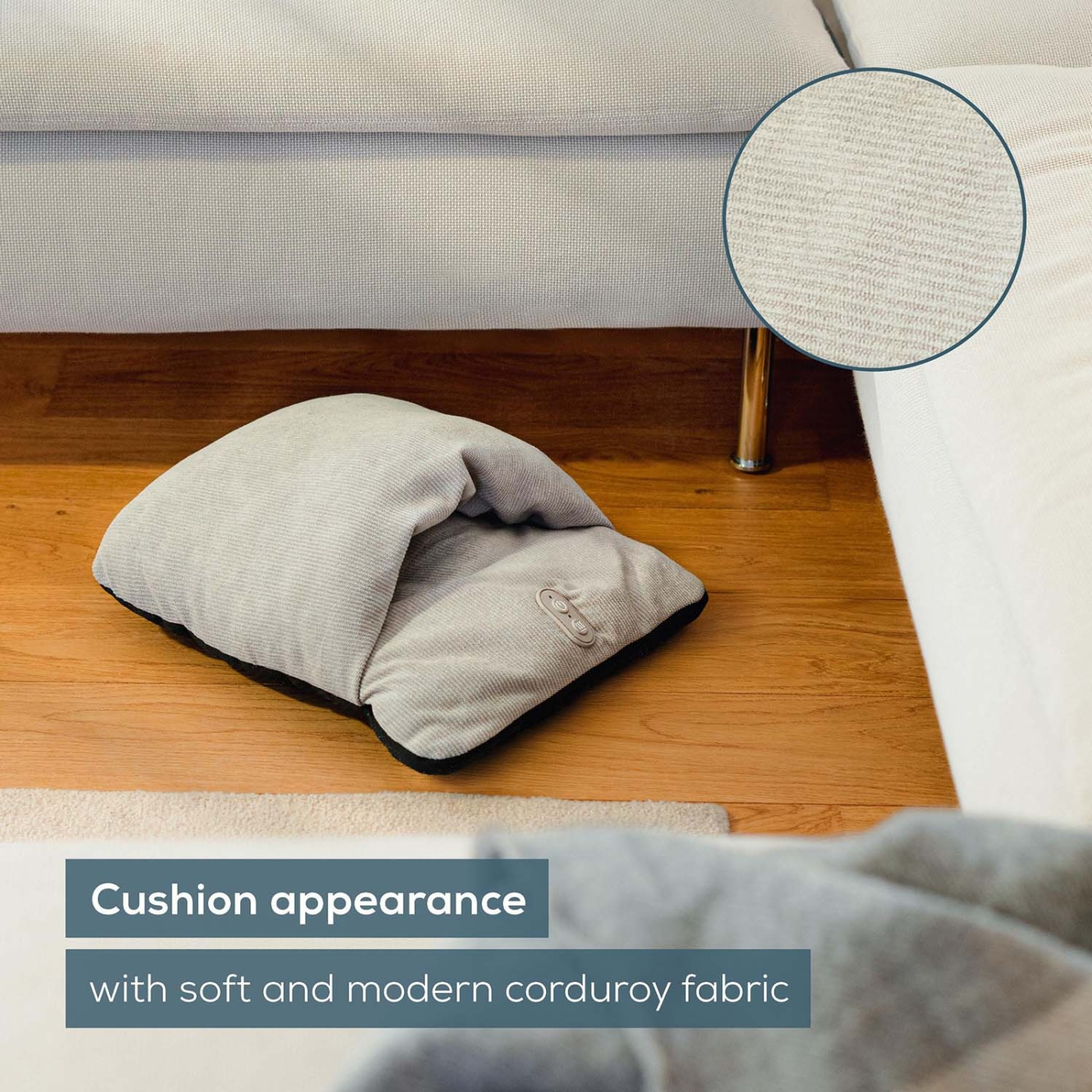 Beurer FM 28 är en stilren och kompakt 2-i-1 fotmassageapparat och fotvärmare som ger skön lindring till trötta, kalla eller tunga ben. Den är designad som en mjuk kudde i trendigt manchestertyg och smälter in i hemmets inredning samtidigt som den erbjuder effektiv vibrationsmassage och värmeterapi. Perfekt både vid skrivbordet och i soffan – FM 28 ger dig en bekväm och avslappnande stund när du behöver det som mest.