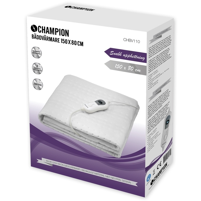 Championsengevarmeren er for deg som ofte fryser og setter pris på en behagelig oppvarmet seng for en god natts søvn. Den har tre temperaturinnstillinger å velge mellom og en automatisk utkoblingsfunksjon etter tre timer. Størrelsen er tilpasset en enkeltmadrass. Sengevarmeren kan vaskes i maskin etter at støpselet og ledningen er fjernet.