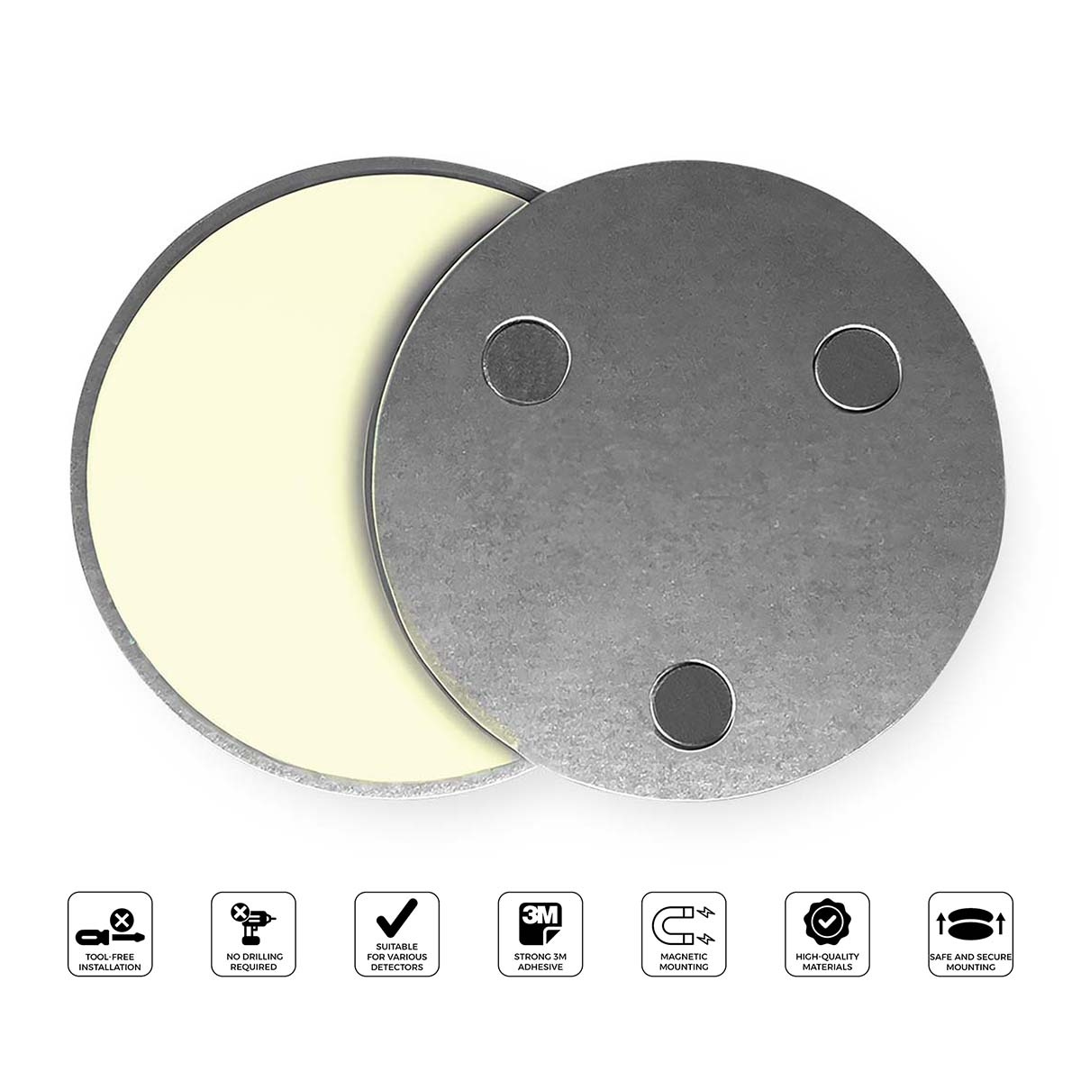Med dette magnetiske monteringssettet kan du installere røyk- eller karbonmonoksiddetektoren raskt og sikkert. Du slipper å bore og holder tak og vegger intakte. Den runde formen passer til de fleste røyk- og CO-detektorer.