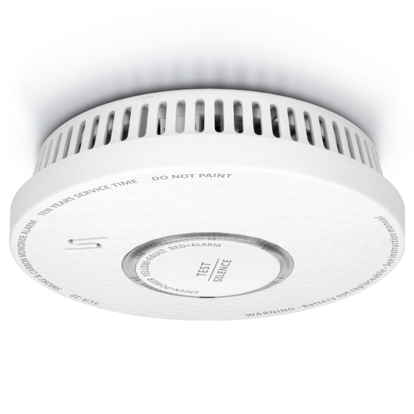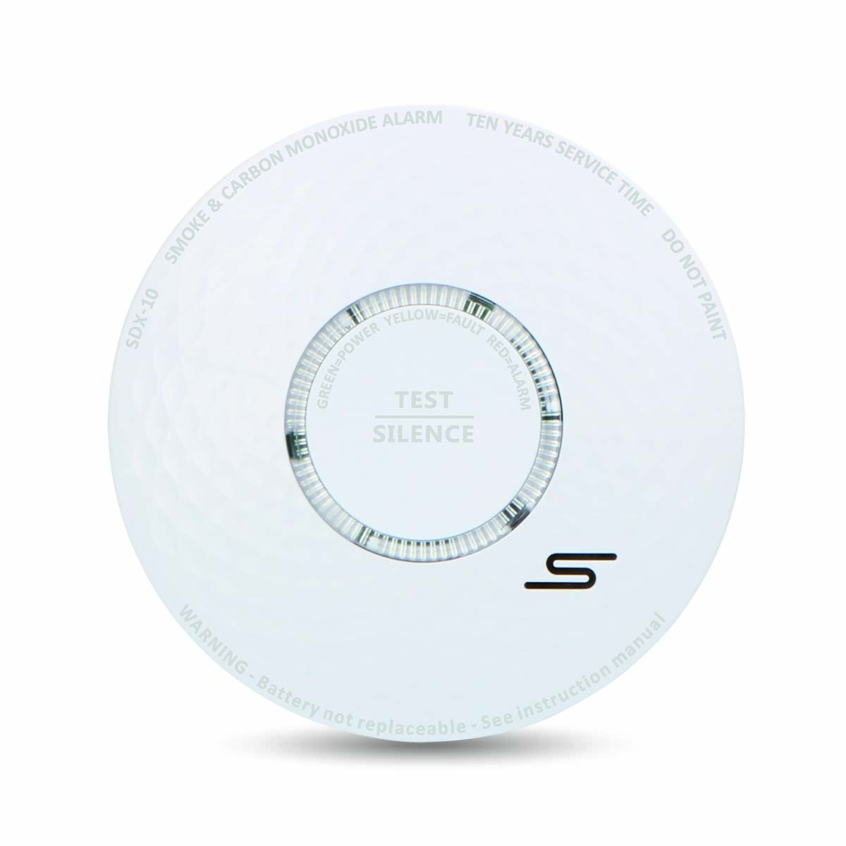 Denne slitesterke røyk- og karbonmonoksidalarmen har et innebygd litiumbatteri med en levetid på 10 år. Den har også to sensorer med en levetid på 10 år. Når batteriet er lavt og må skiftes ut, vil enheten gi et varsel. Den slutter ikke å fungere med en gang, men det anbefales å bytte ut alarmen så snart som mulig. Fordi sensoren og batteriet har samme levetid, trenger du ikke å bytte batterier, og du trenger ikke å holde øye med sensorenes levetid.