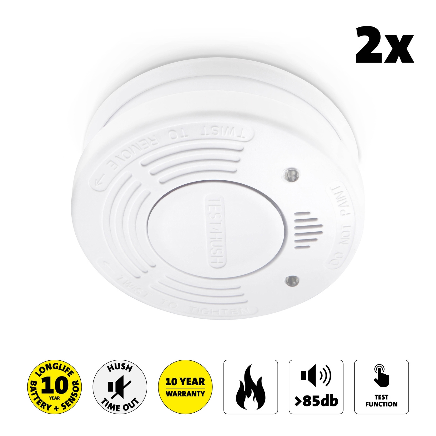 Denne kompakte røykvarsleren har et litiumbatteri med 10 års levetid innebygd, i tillegg til at sensoren også har en lang levetid på 10 år. Dette sikrer at røykvarsleren din vil fungere i minst 10 år etter installasjon. Tenk deg fordelene: du trenger aldri å kjøpe nye batterier til røykvarsleren, noe som sparer deg for penger, og du trenger aldri å ta en stige for å skifte dem. Den lange levetiden gir også ekstra sikkerhet og trygghet, fordi det ikke er noen risiko for at batteriet er tomt i en nødsituasjon.