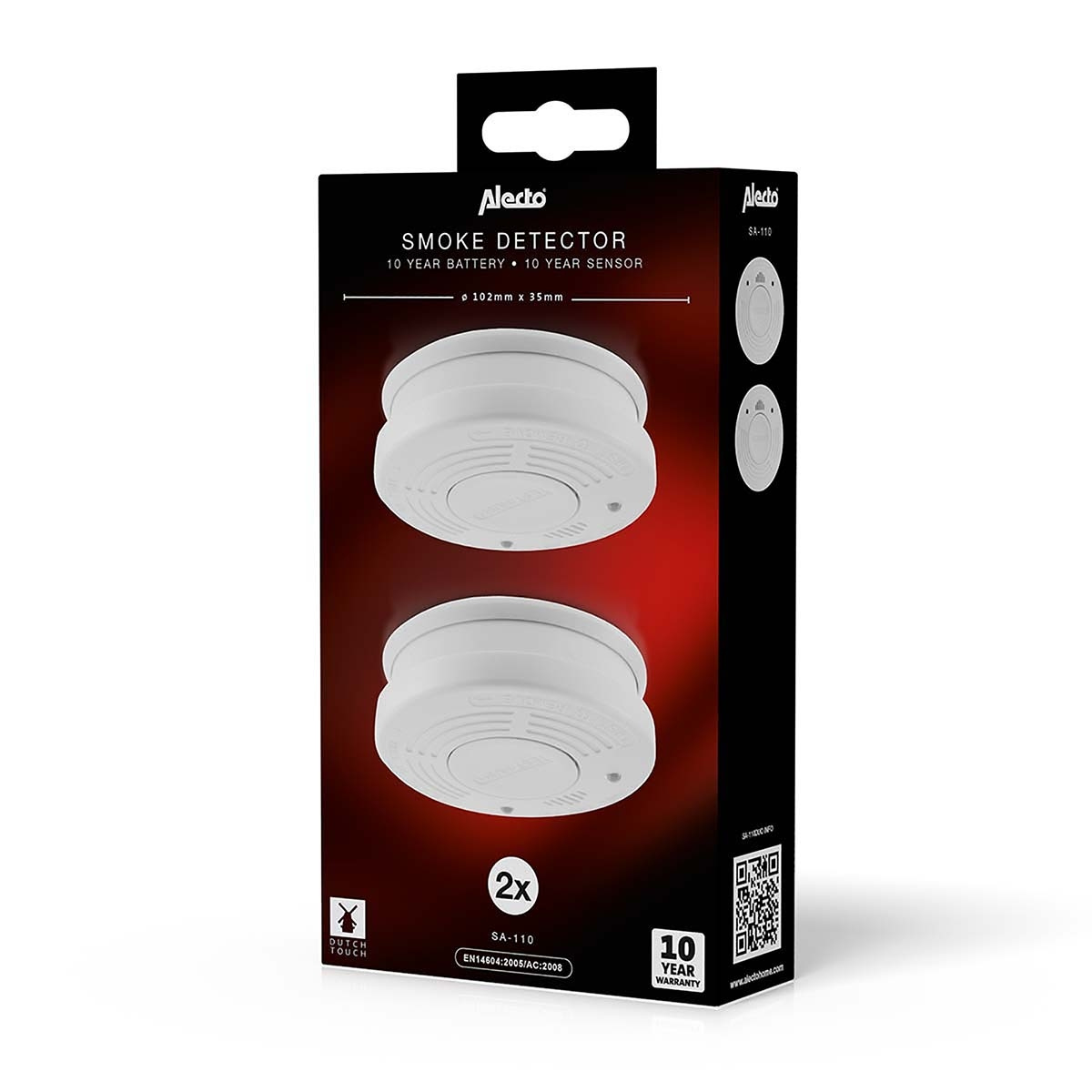 En røykvarsler er en liten enhet som beskytter mot røyk og brann. En røykvarsler er uunnværlig i alle husholdninger og på alle kontorer. Hvis det begynner å brenne, må du vite det umiddelbart, slik at du kan handle deretter. Denne røykvarsleren SA-110 DUO vil utføre denne handlingen for deg. Når røyk detekteres, vil røykvarsleren advare deg med en alarm på 85 desibel. Til sammenligning er dette det nivået leger anbefaler at du bruker ørepropper. Med andre ord et lydnivå du aldri kan gå glipp av!