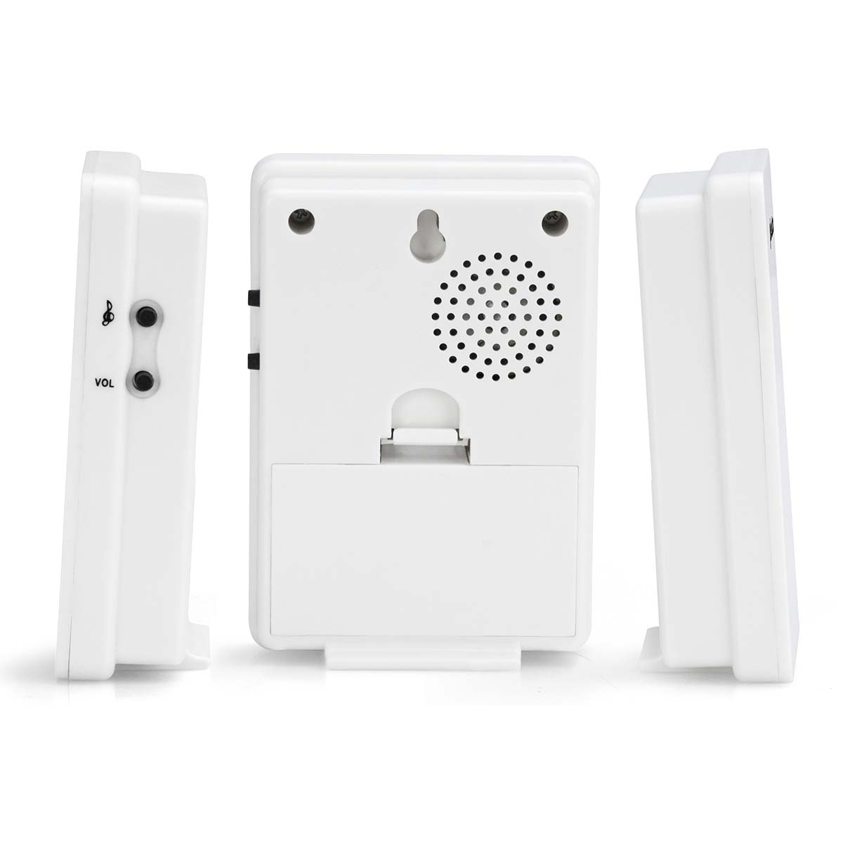 Når været er godt, vil du kanskje jobbe i hagen, sole deg eller lese en bok. Hva om du også venter en pakke du ikke vil gå glipp av? Det er ikke sikkert at dørklokken din kan høres i hagen. Den enkle løsningen her er en trådløs dørklokke. Et enkelt, men veldesignet produkt som varsler deg når noen ringer på døren, samtidig som du kan fortsette med det du holder på med hjemme eller i hagen. Du plasserer ganske enkelt ringeklokken ved inngangsdøren - noe som er svært enkelt, ettersom du ikke trenger noen kabler - og tar mottakeren med deg. Dørklokkens rekkevidde er opptil 30 meter og fungerer med et kodet signal som har lite eller ingen interferens. Du kan velge mellom 36 ringetoner, så du finner garantert en du liker. I tillegg kan volumet justeres. Denne trådløse ringeklokken og mottakeren er et brukervennlig produkt som gjør hjemmet ditt enda mer komfortabelt.