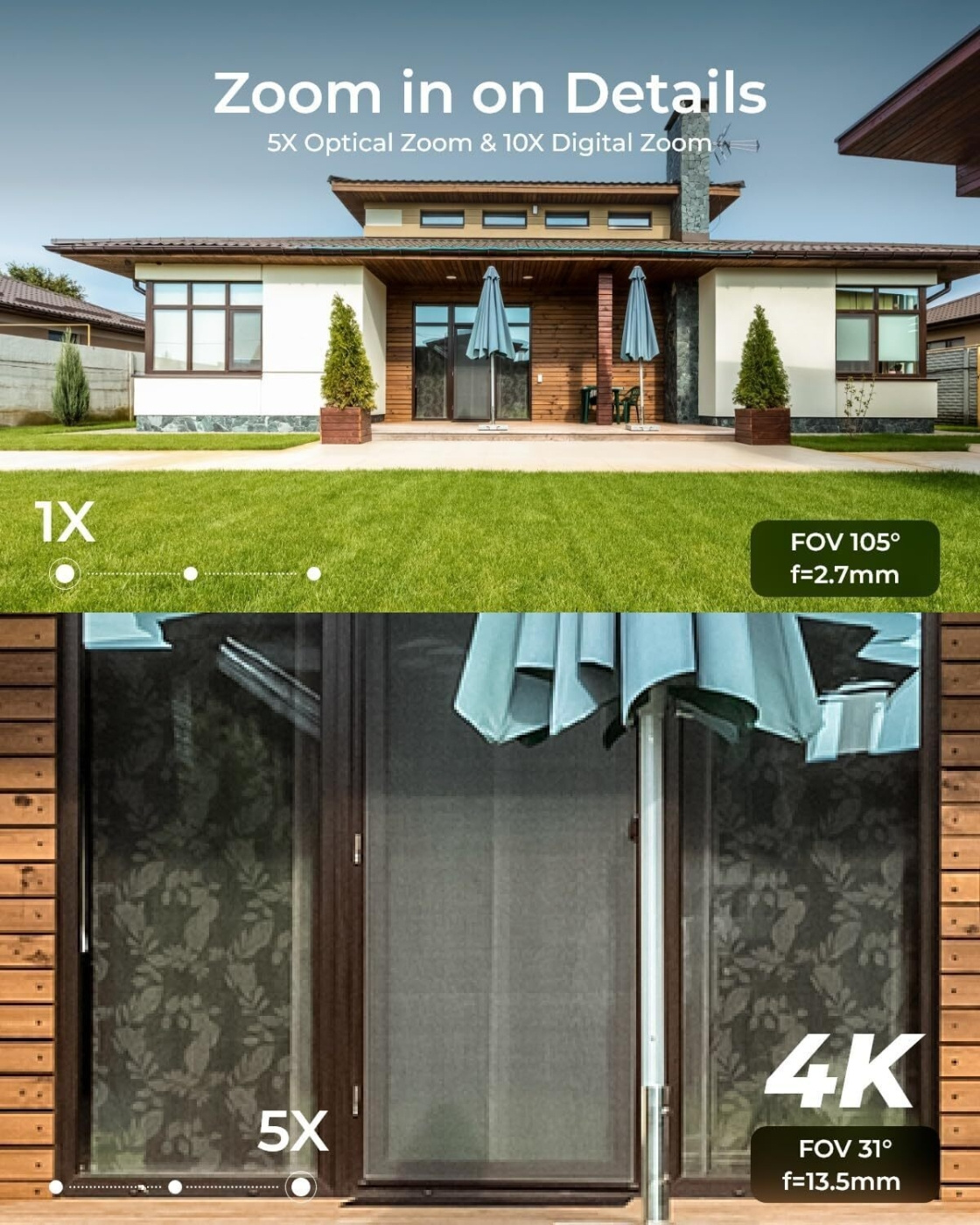 Reolink RLC-843WA overvåkningskamera for utendørs og innendørs bruk. Et værbestandig overvåkningskamera med aluminiumsramme, utstyrt med utmerket bildekvalitet og 5X optisk zoom. Kameraet har en oppløsning på hele 3840 x 2160. Kameraet har også intelligent bevegelsesdeteksjon, minnekortspor og toveis lyd.