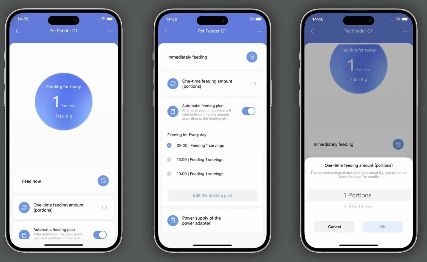 Aqara Smart Pet Feeder C1 er ikke bare en fôringsenhet, den fungerer også som en repeater for å forbedre rekkevidden til Zigbee-nettverket ditt. Aqara Dette betyr at alle enhetene dine kan fungere sømløst og pålitelig. Strømforsyningen kan enten skje via USB-A-porten eller med D-batterier (LR20). På denne måten forblir enheten tilkoblet selv under strømbrudd. Aqara I Home-appen kan du opprette automatiseringer med andre sensorer og enheter for å sette opp daglige rutiner eller interessante "hvis så"-situasjoner som gjør produktet virkelig smart. Enheten har en innebygd mikrofon, slik at du kan spille inn meldinger til kjæledyret ditt. Du kan også lage stemmeløsninger for flere rom og justere volumet med tilpassede ringetoner.