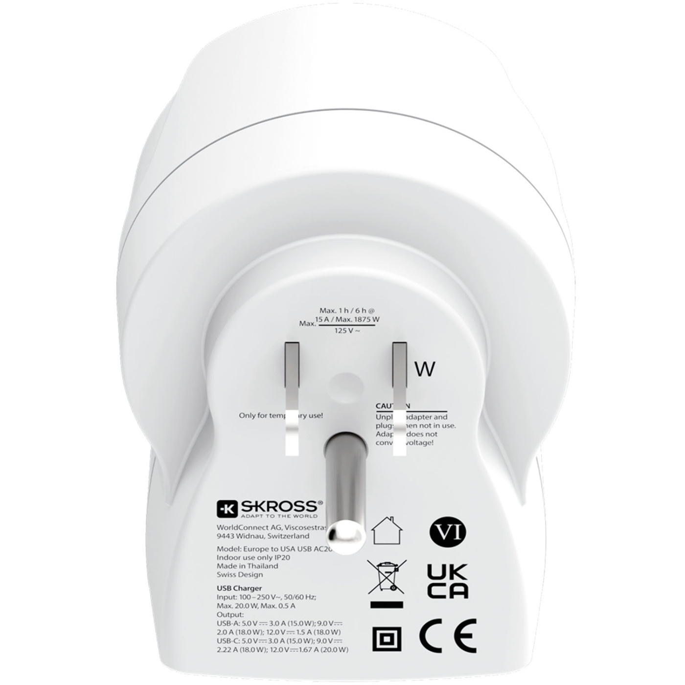 Den amerikanske stikkontaktstandarden brukes på nesten 50 destinasjoner rundt om i verden. Denne reiseadapteren fra SKROSS® gir en pålitelig og enkel tilkobling for enheter med Schuko- eller Euro-plugg.
