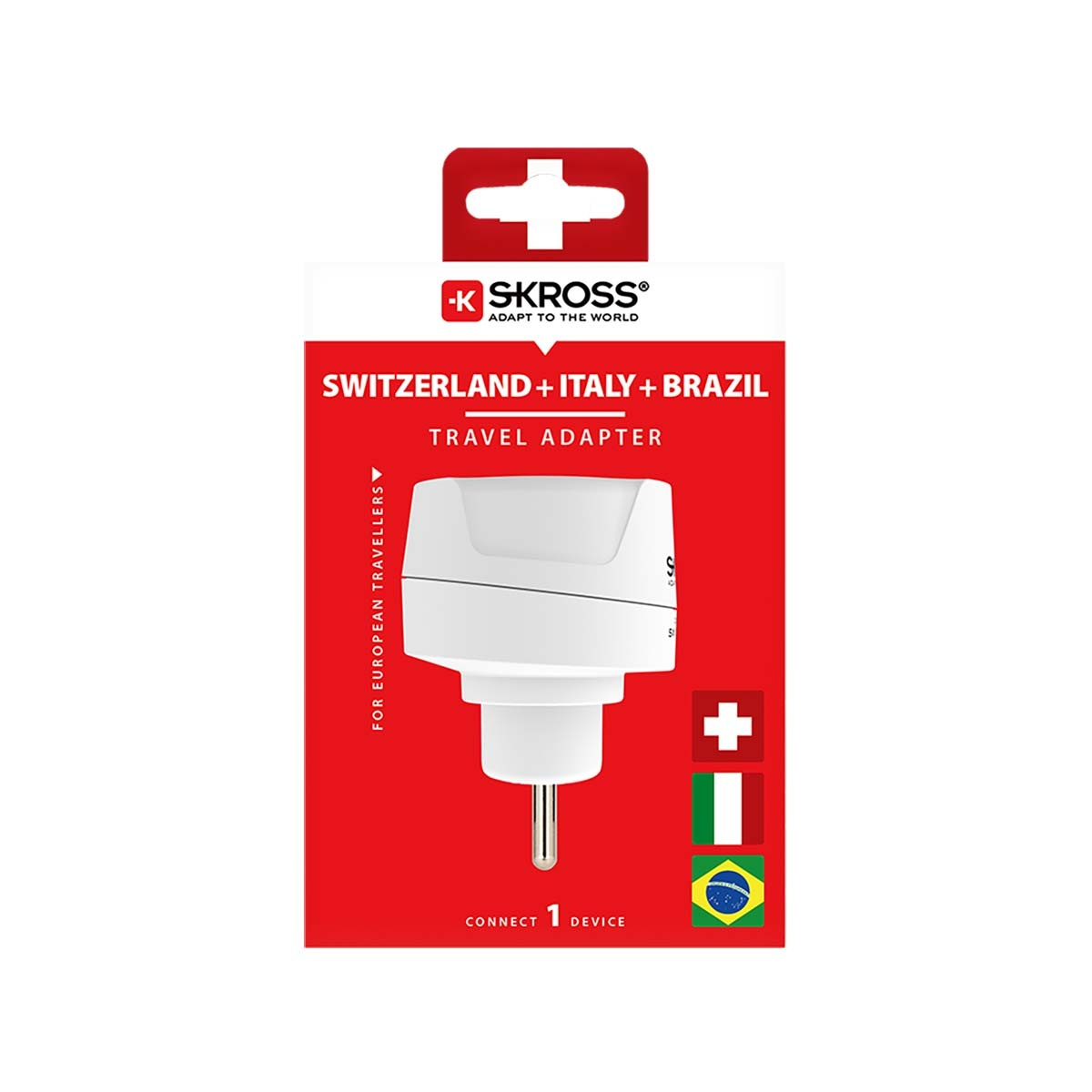 SKROSS Reseadapter Europa till Schweiz + Italien + Brasilien - För 2- och 3-poliga enheter (jordad eller Euro-kontakt)