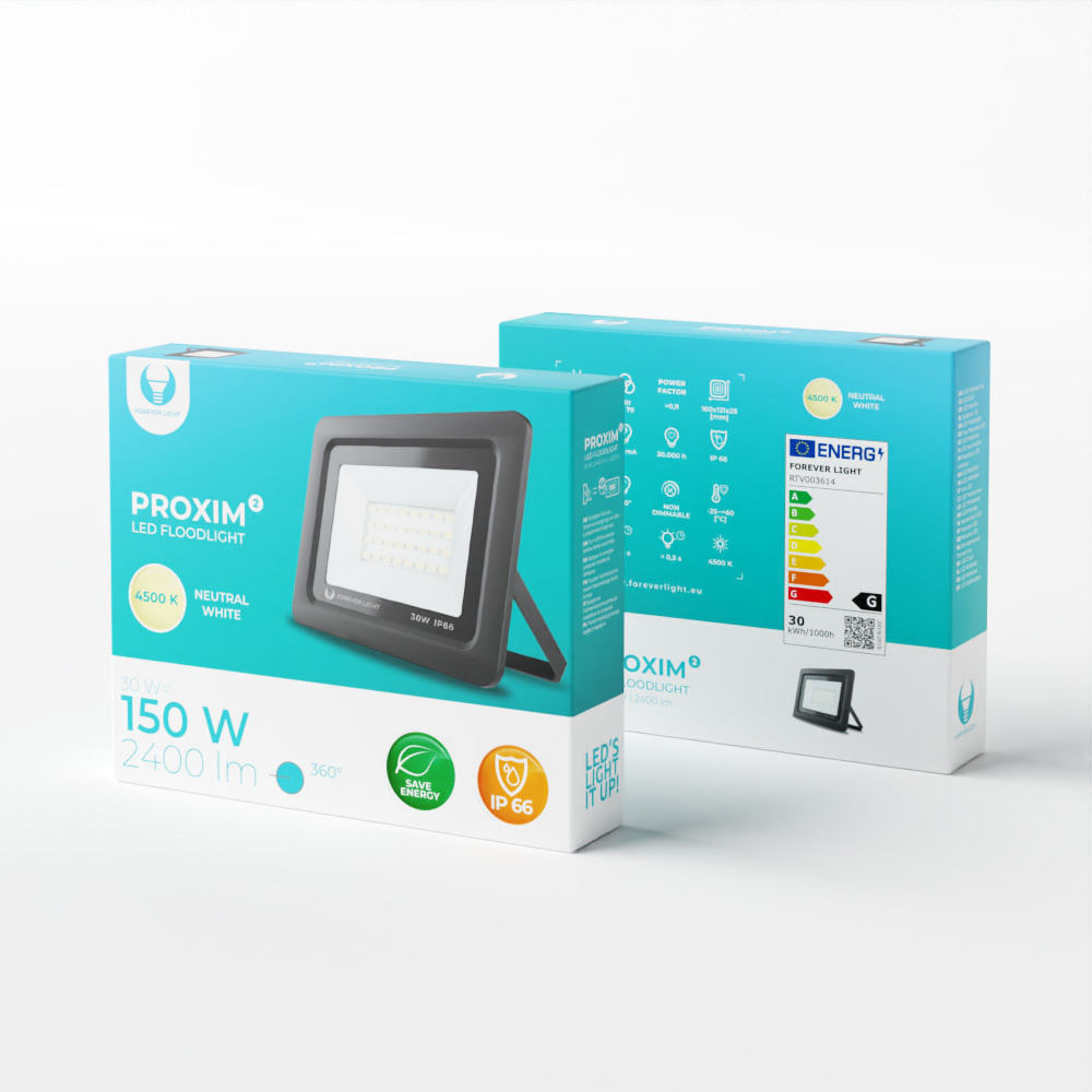 LED-flomlys på 30W. Gir et veldig klart og sterkt lys uten å trekke mye strøm. Armaturen er IP66-klassifisert og egner seg for utendørs bruk i nærheten av hjemmet.