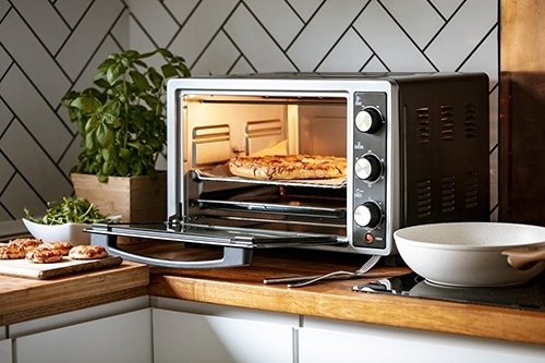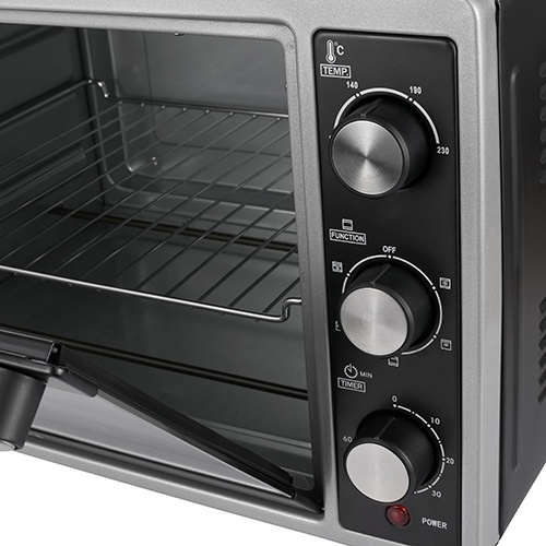 Elektrisk ovn av høy kvalitet med grillrist og stekebrett. Den gjør det mulig å tilberede stekt kjøtt, bake kaker og tilberede andre retter som krever høye temperaturer. Ovnen lar deg velge oppvarmingsmodus: undervarme, overvarme eller begge deler samtidig. Varmeelementene er laget av motstandsdyktig rustfritt stål, noe som gjør dem holdbare og pålitelige. Takket være en timer blir brukeren informert når en viss tid er gått. Derfor er det mye mindre sannsynlig at du brenner maten. Den elektriske ovnen har en stor kapasitet på 35 liter, noe som gjør det mulig å tilberede store porsjoner mat eller tilberede to forskjellige produkter samtidig.