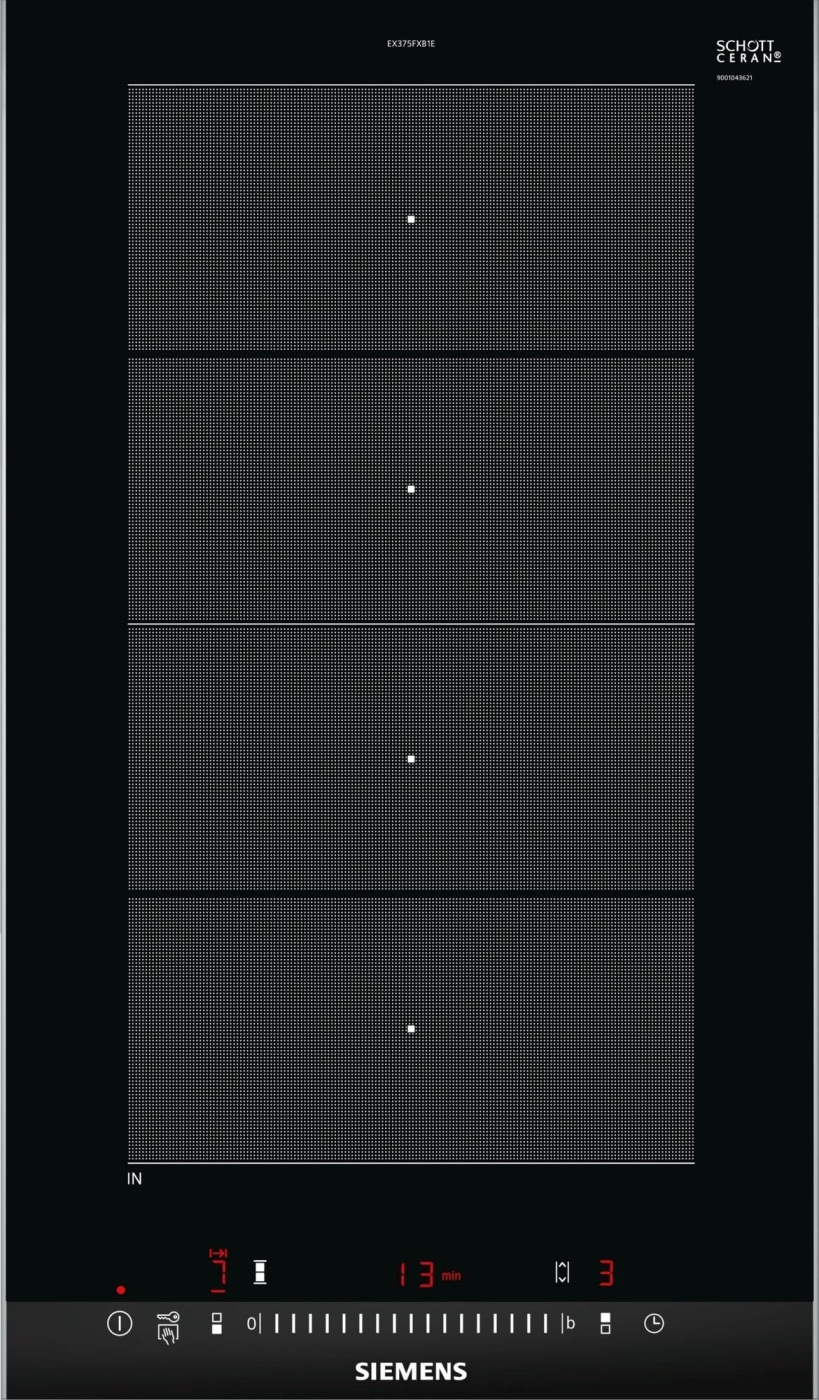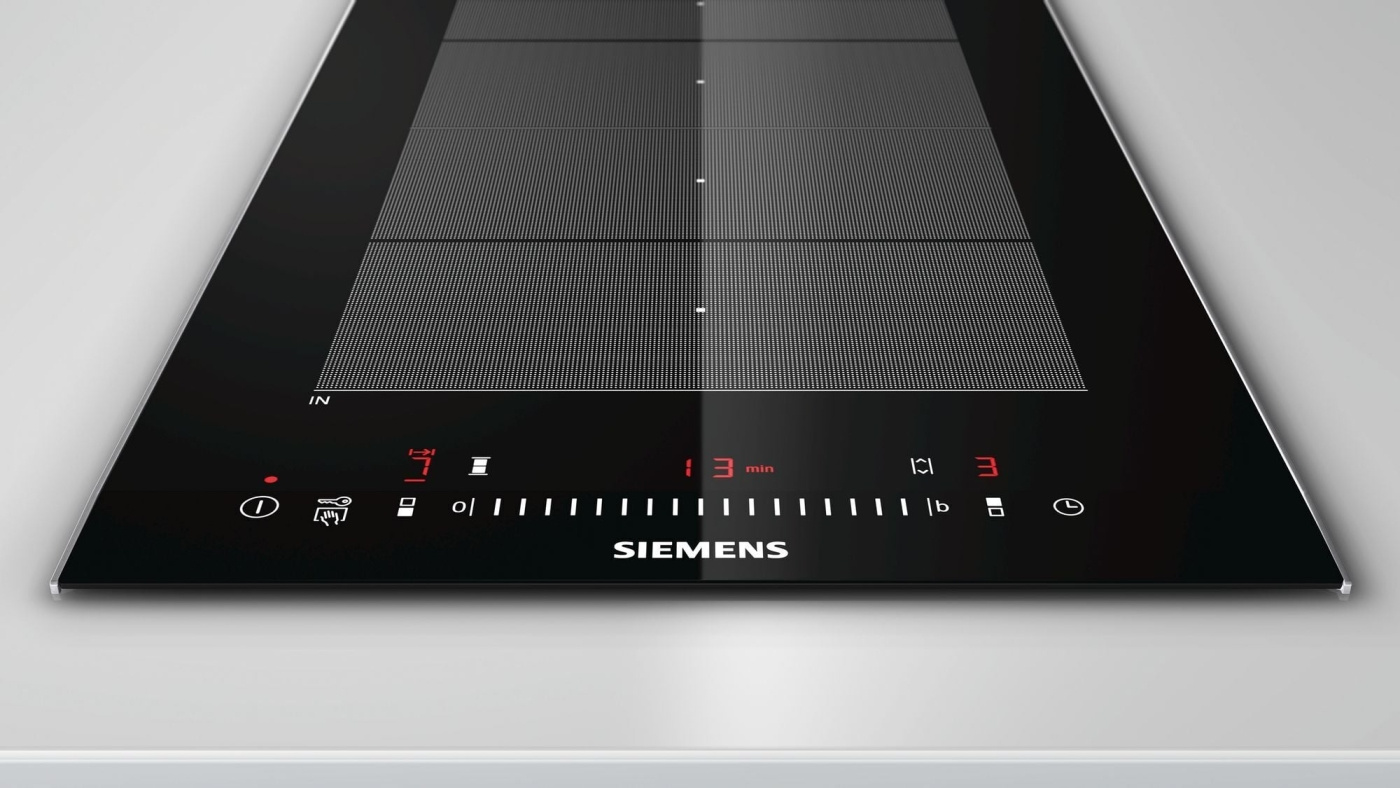Siemens i Domino induksjonstopp med flexInduction-kokeplater og powerMove Plus-funksjon. Med powerMove Plus-funksjonen trenger du ikke lenger å justere effekten separat. Du kan enkelt flytte gryten, og kokeplaten velger automatisk den innstilte temperaturen. Med det brukervennlige kontrollpanelet kan du velge ønsket effekt fra 17 forskjellige nivåer. I tillegg har kokeplaten en timer som lar deg slå av kokeområdet etter en bestemt tid.