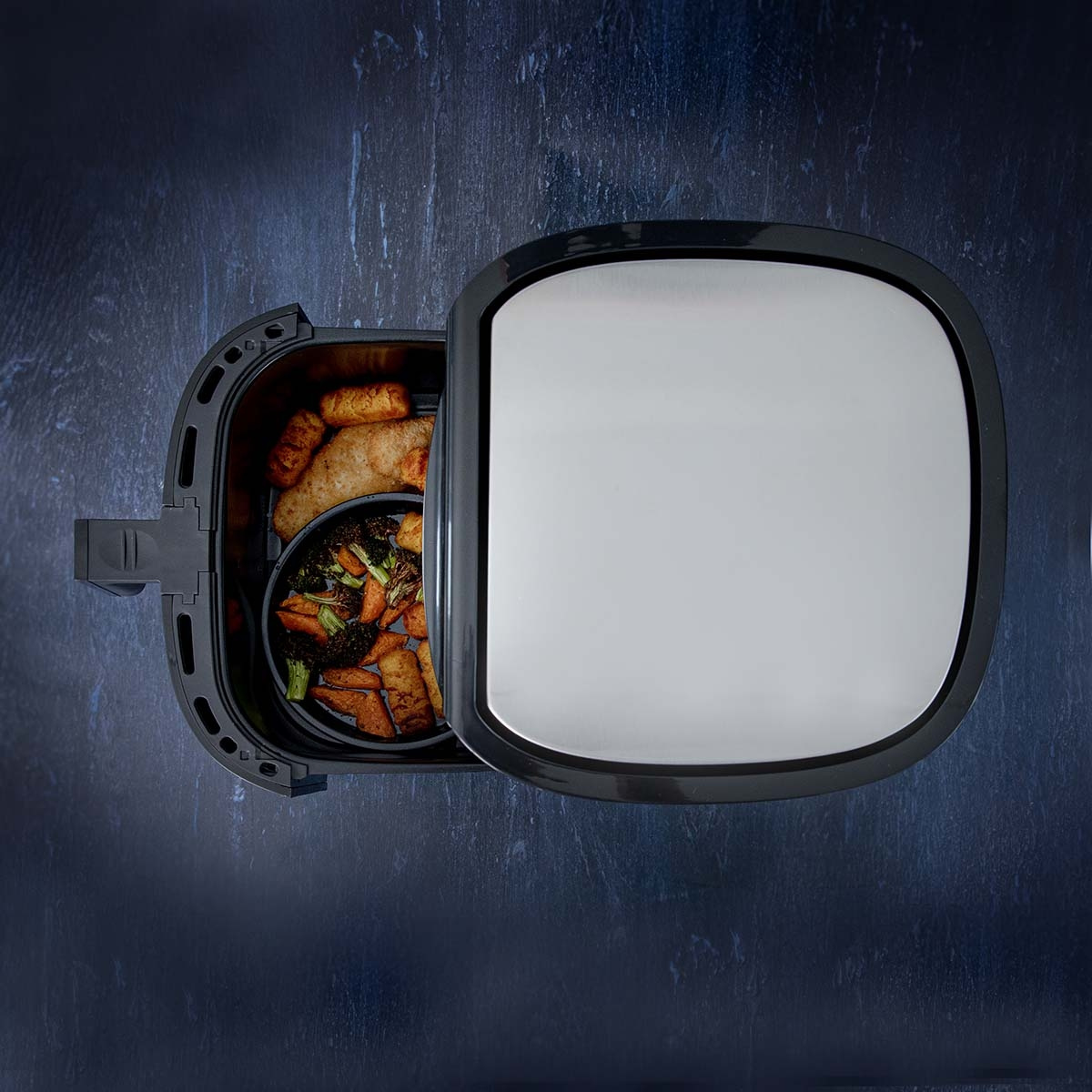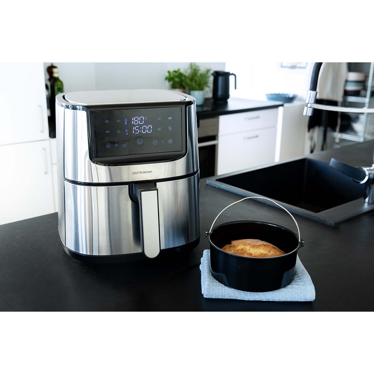 Tilbered mat raskt og enkelt med Gastronoma Airfryer. Denne airfryeren har en romslig kapasitet på 8 liter og leveres med diverse tilbehør som kakeform, pizzapanne og grillstativ, alle med PFAS-fritt keramisk belegg. Du kan velge mellom 8 automatiske programmer eller stille inn temperaturen fra 80-200 °C og timeren på opptil 60 minutter. Det raske luftsirkulasjonssystemet sørger for jevn tilberedning og sparer energi, mens overopphetingsbeskyttelse, sklisikre føtter og cool touch-håndtak sikrer trygg bruk. Med justerbar termostat, LED-display og berøringsskjerm er denne airfryeren både brukervennlig og effektiv. Den vakre designen i rustfritt stål og svart plast passer perfekt inn i ethvert moderne kjøkken. Gjør matlagingen til en lek med Gastronomas Airfryer.