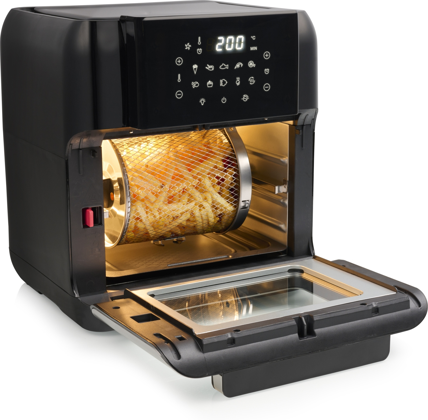 Er du usikker på om du skal velge en frityrgryte eller en miniovn? Princess da er 183032 Aerofryer-ovnen det perfekte valget for deg. Den luksuriøse kombinasjonen av frityrgryte og miniovn gjør at du kan grille, bake, steke og riste. Den roterende nettingkurven sørger for at du får de sprøeste pommes fritesene noensinne, og at de tilberedes svært enkelt. I tillegg kan du bake snacks på tre ovnsbrett med en spesiell luftkonveksjonsteknologi.