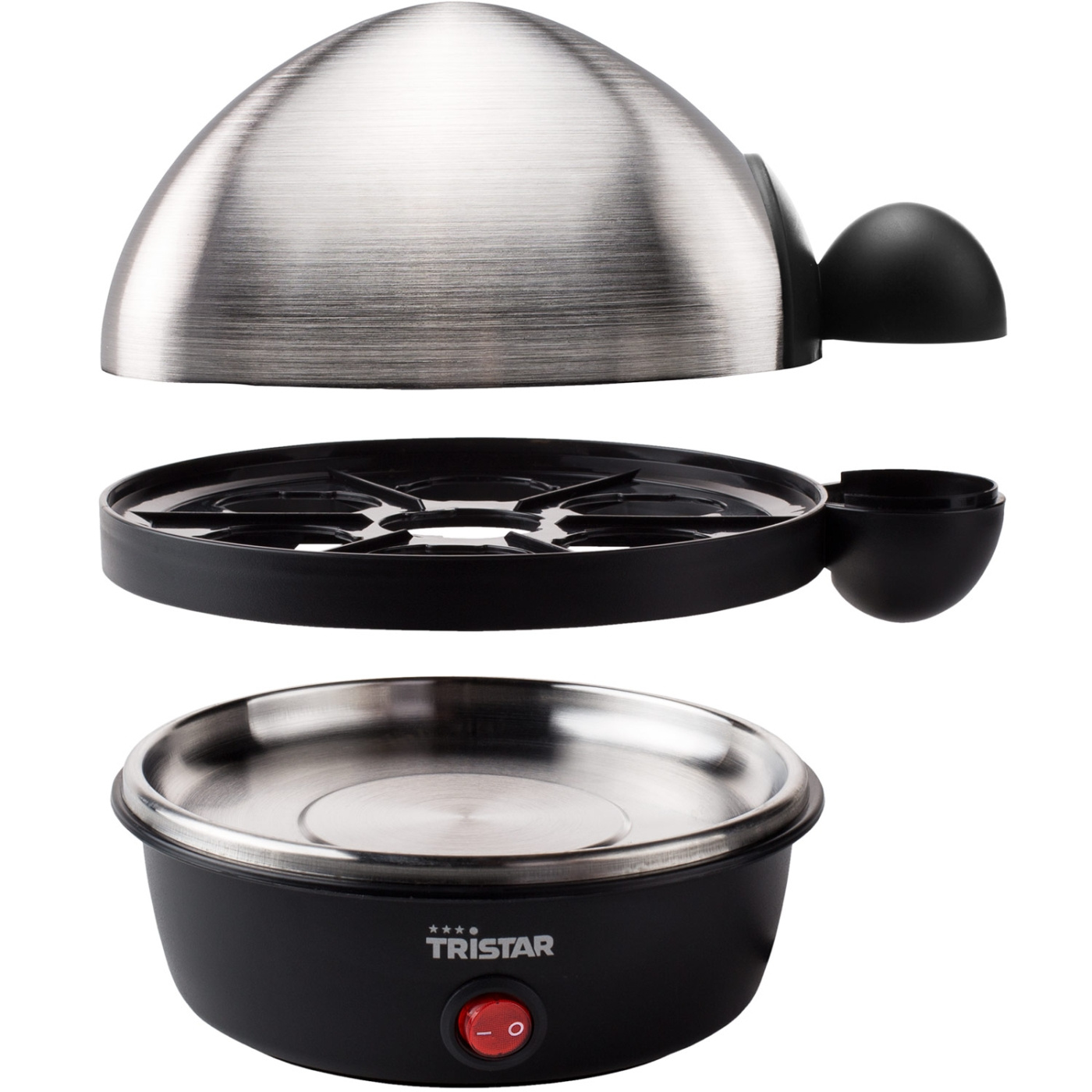 Designad äggkokare i rostfritt stål för 7 ägg per gång. Äggkokaren har ett äggfack och ett måttglas med en inbyggd äggstans.