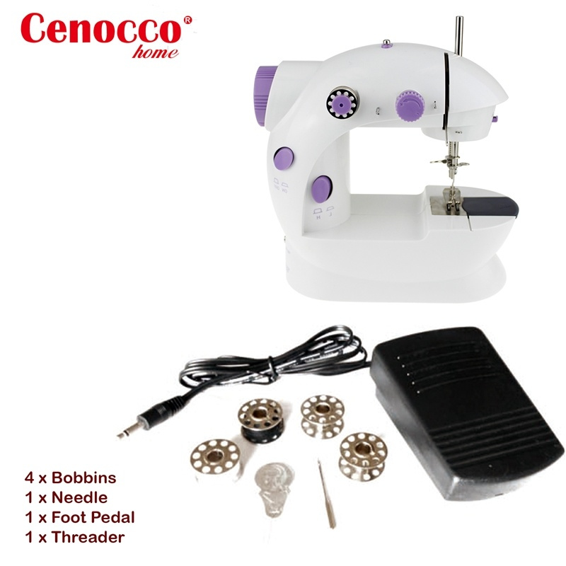 Cenocco CC-9081: Mini Sewing Machine er en bærbar symaskin som gjør at du kan sy på en rask og effektiv måte. Denne symaskinen er laget i ABS-materiale av høy kvalitet og har de fleste funksjonene som kreves av en profesjonell symaskin. Alle materialene som brukes er miljøvennlige, og den kompakte og moderne designen ser veldig vakker ut. Den doble bryteren gjør at du kan bruke en fotpedal eller håndbryteren. Den innebygde viklingsstangen og spoleassistenten gjør det enkelt å bytte spoler. De to hastighetsalternativene gjør at du kan velge den hastigheten som passer best til dine behov, og du får perfekt sømkontroll som matcher dine ferdigheter. De doble trådfunksjonene på overtråden kombineres med den enkle undertråden og gjør at du kan sy i høy kvalitet. Denne kompakte symaskinen har en fast tråd og en funksjon som gjør den enkel å tråde, og den har trådkutter og oppviklingsfunksjon. Perfekt for syentusiaster, for øyeblikkelig fiksering og justering av klær og for de som elsker DIY-håndverk. Cenocco Lag dine egne håndvesker, klær, laken, duker, gardiner, kjæledyrklær, utstoppede dukker og mye mer med Mini Sewing Machine.