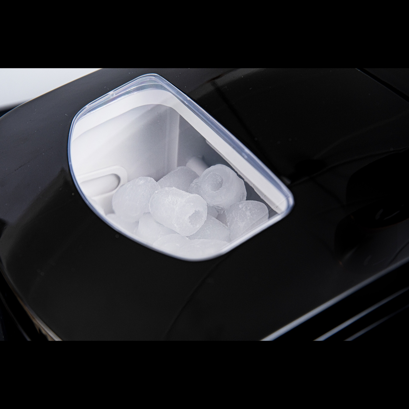 Maskinen er svært brukervennlig - fyll beholderen med vann, velg ønsket isbitstørrelse på knappene på toppen og start maskinen. Den slår seg automatisk av når isbeholderen er full, og et LED-lys indikerer når du må fylle på vann.