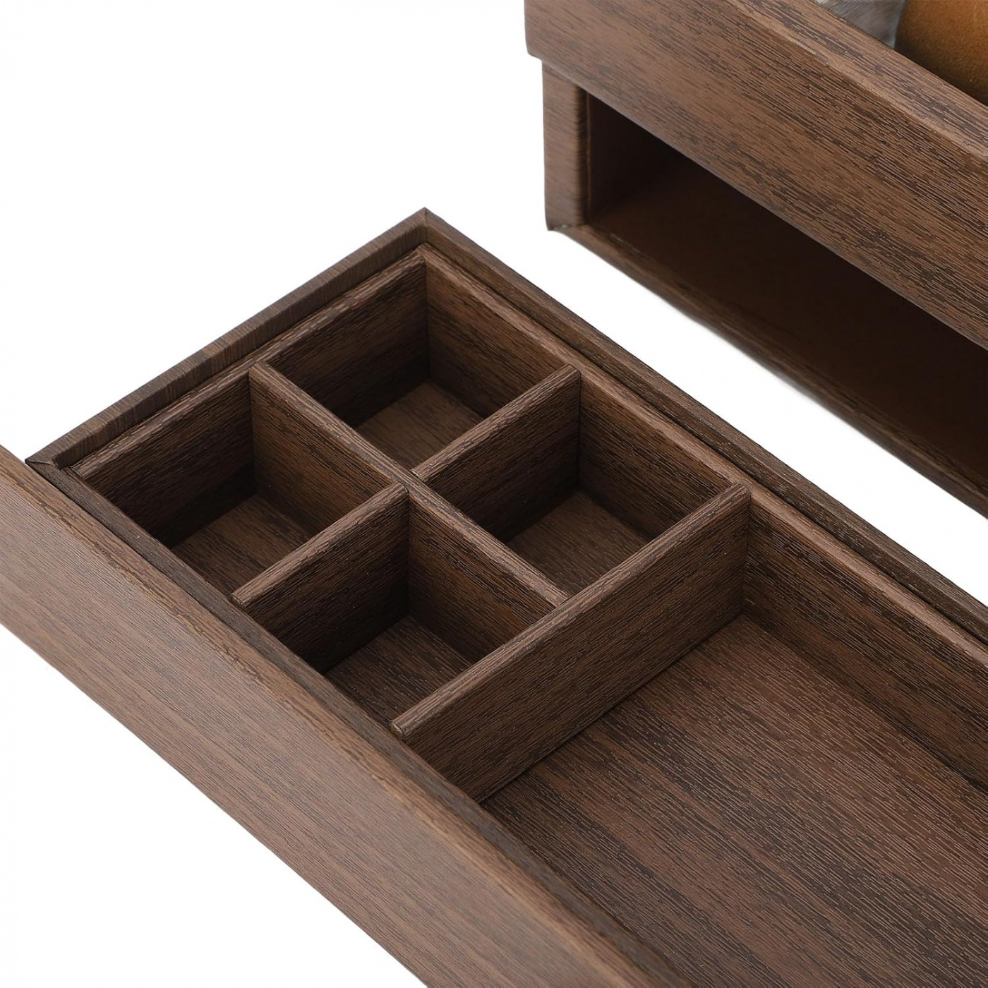 - Extra förvaringsutrymme – En utdragbar låda med fack för smycken, manschettknappar, ringar och andra små accessoarer.