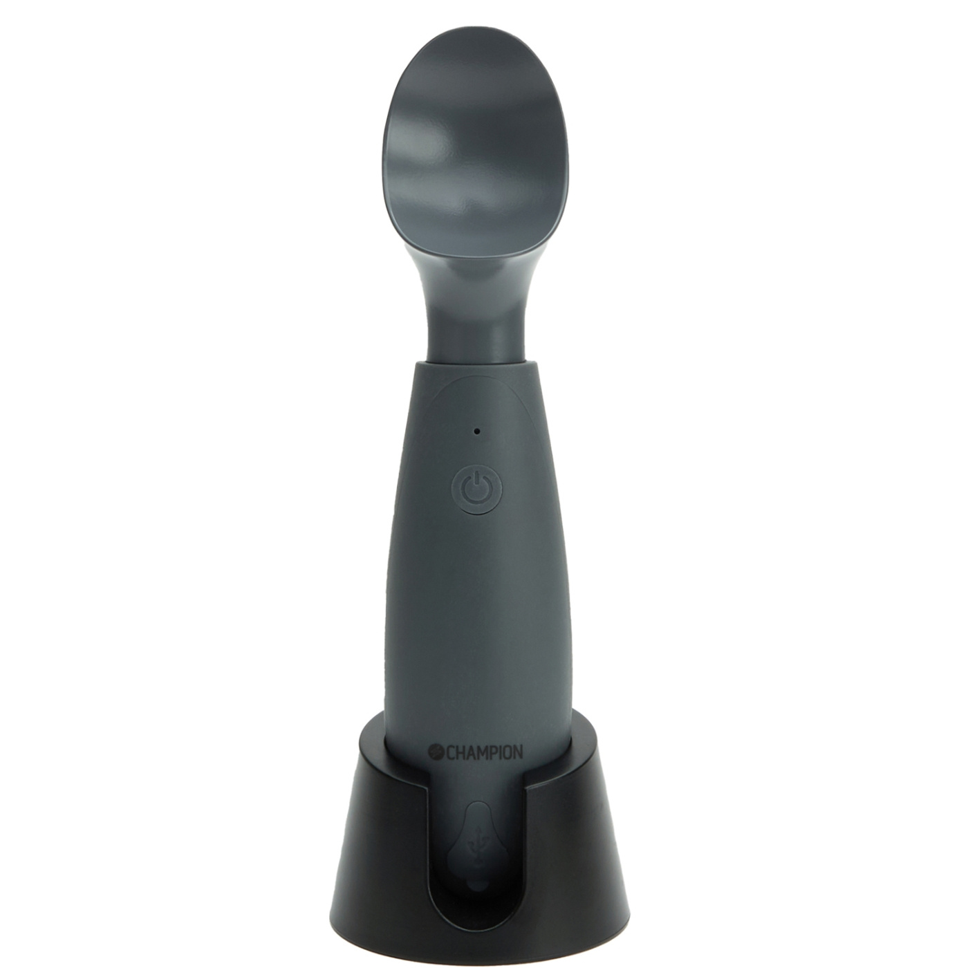 Säg hejdå till kämpiga glasskopor och skedar som böjs av för hård glass. Ta dina desserter till nästa nivå med Champions elektriska glasskopa. Den är din genväg till krämigt goda, eleganta glasskulor, utan något kladd. Den uppvärmda skopan eliminerar behovet av varmvatten, starta bara skopan, låt den förbereda sig en liten stund, och när den är redo kommer den att glida genom glassen och ge perfekta kulor varje gång!