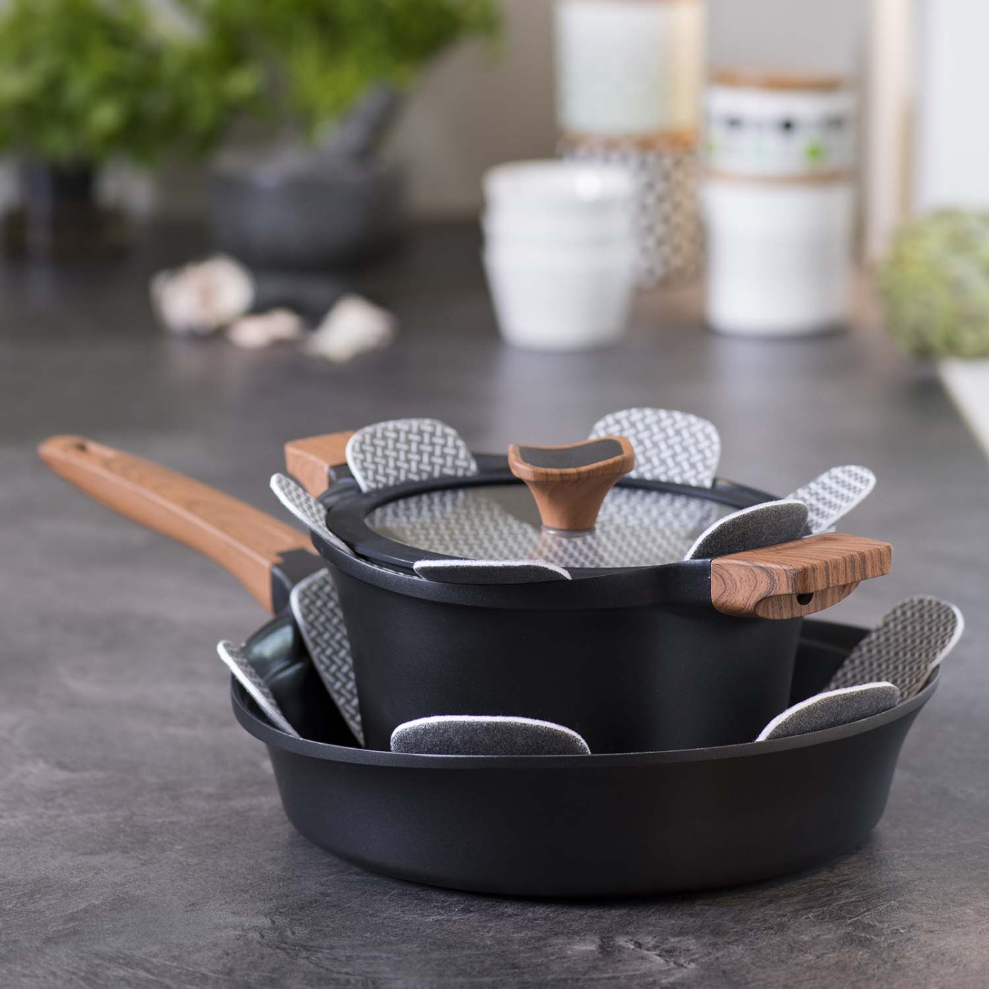 Med dessa skydd slipper du repor och onödigt slitage när du staplar dina stekpannor och kastruller. Perfekt för dig som vill hålla köksutrustningen i toppskick.