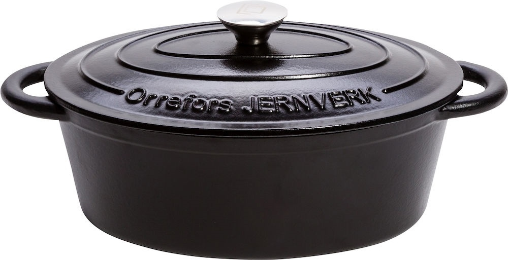 Orrefors Jernverks støpejernsgryte kan også brukes i ovnen. Fordel varmen jevnt med en støpejernspotte, og etter at pannen er oppvarmet, holder den en jevn temperatur.