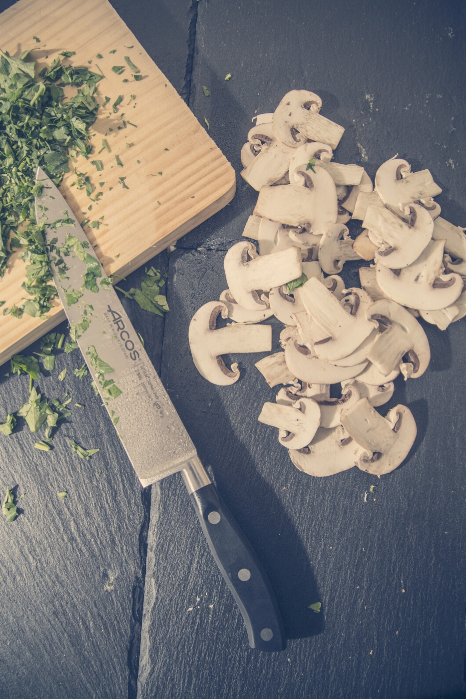 ARCOS knivene har et håndtak av slitesterk, fuktbestandig polyoksymetylenplast (POM) og nagler av rustfritt stål.ARCOS Håndtakene støpes og festes på knivene i Arcos' egen fabrikk. Knivene er pakket i stilige, gjennomsiktige gaveesker.