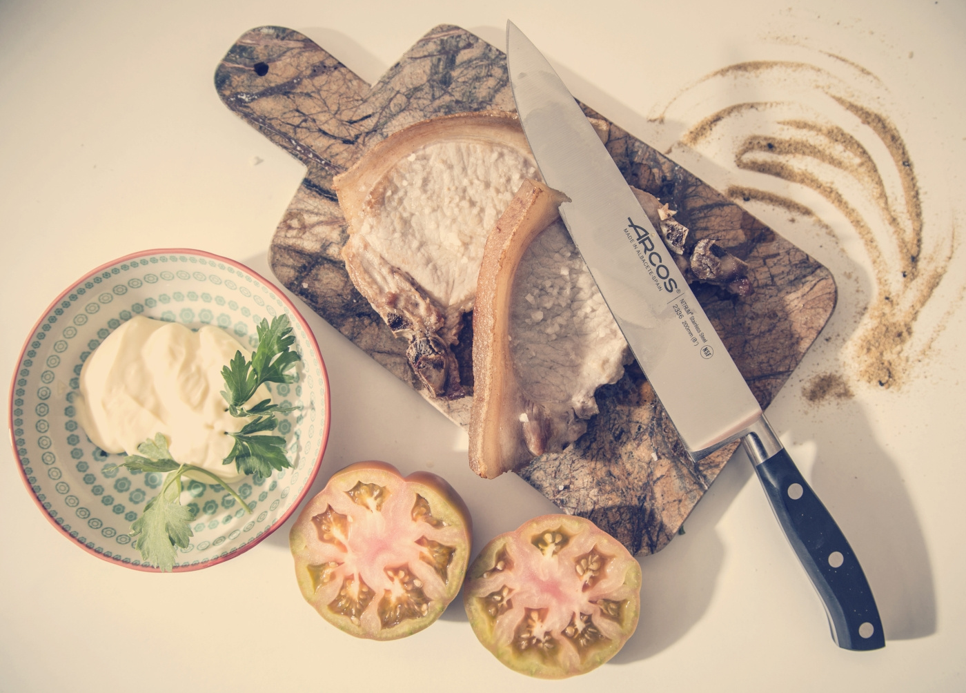 En kokkekniv med et 20 cm langt blad og et slankt skaft. Denne kniven egner seg godt som universalkniv på kjøkkenet til å skjære kjøtt, grønnsaker og fisk. ARCOS Et godt valg for hjemmekokken eller nybegynneren. Knivene er profesjonelle verktøy med et utmerket forhold mellom pris og kvalitet. Knivene er laget i den spanske knivtradisjonen i provinsen Albacete siden 1745, og er laget av Nitrum rustfritt stål med en hardhet på C56 på Rockwell-skalaen. Også dette stålet er produsert i Spania.