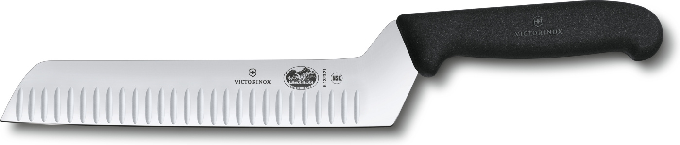 Victorinox ostekniven med Fibrox-håndtak og 21 cm blad er et utmerket valg som en generell ostekniv, da størrelsen gjør den egnet til å skjære litt større stykker. Osten slipper imidlertid bedre fra det glatte stålet enn fra det flate, noe som gjør det lettere å håndtere spesielt mykere oster.