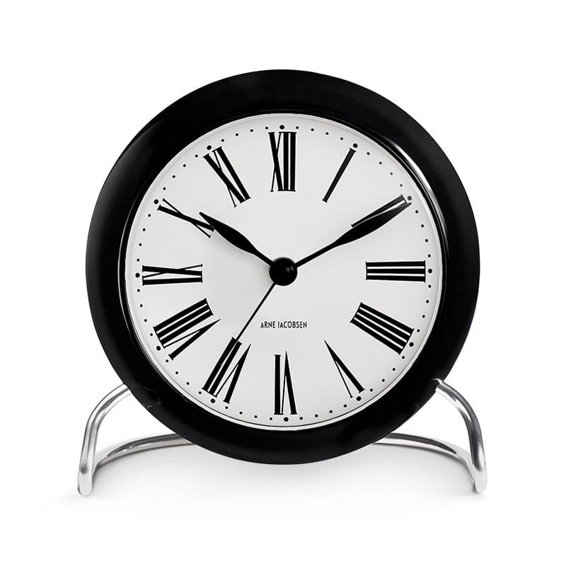 I tillegg til å være arkitekt var Arne Jacobsen en total designer som tegnet alt til sine prosjekter. Hans bordklokke for LK ble opprinnelig laget i 1939 med to forskjellige urskiver. Urskiven med romertall var forløperen til den senere berømte romerske klokken til Aarhus rådhus. Det grafiske uttrykket på den romerske urskiven og metallfoten, tydelig inspirert av stolene Ant og Syver, gjør klokken til en opplagt gaveidé for designelskere. Klokken passer inn i ethvert moderne hjem, og med oppdaterte funksjoner som snooze og lyssensor er den en effektiv vekkerklokke til nattbordet.