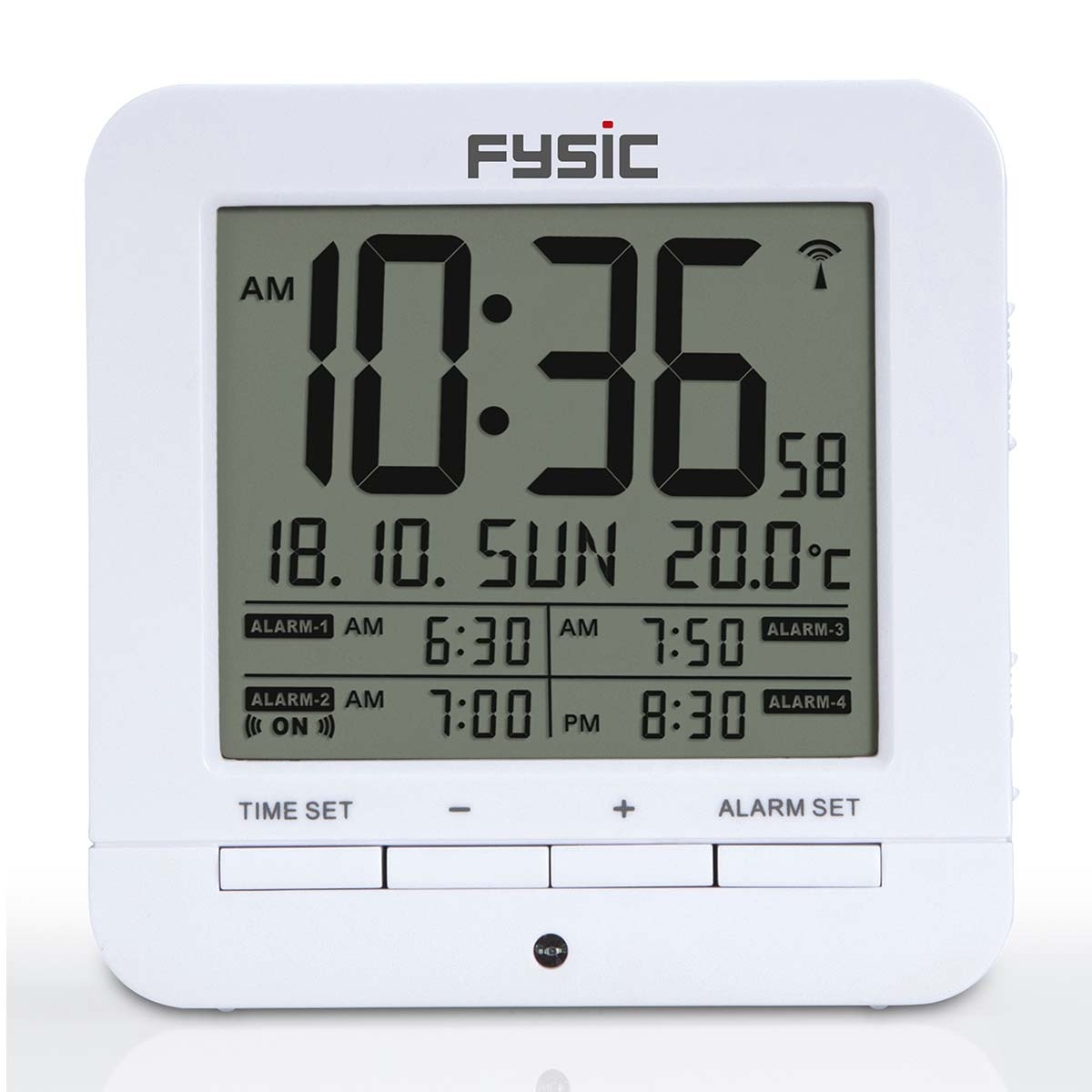 Fysic FKW-8 er en hvit DCF-klokke med temperaturvisning. Den kan brukes som en stående klokke hvor som helst i huset, men den er spesielt egnet for daglig bruk som vekkerklokke. Denne klokken bruker DCF-radiosignalet. Dette signalet, som kan mottas overalt i Europa, overfører nøyaktig atomtid via radiobølger. Vekkerklokken mottar dette signalet og sørger for at klokkeslettet vises korrekt på millisekundet. Du trenger ikke lenger å bekymre deg for om du har riktig tid. Det er også slutt på å justere klokken etter sommertid.