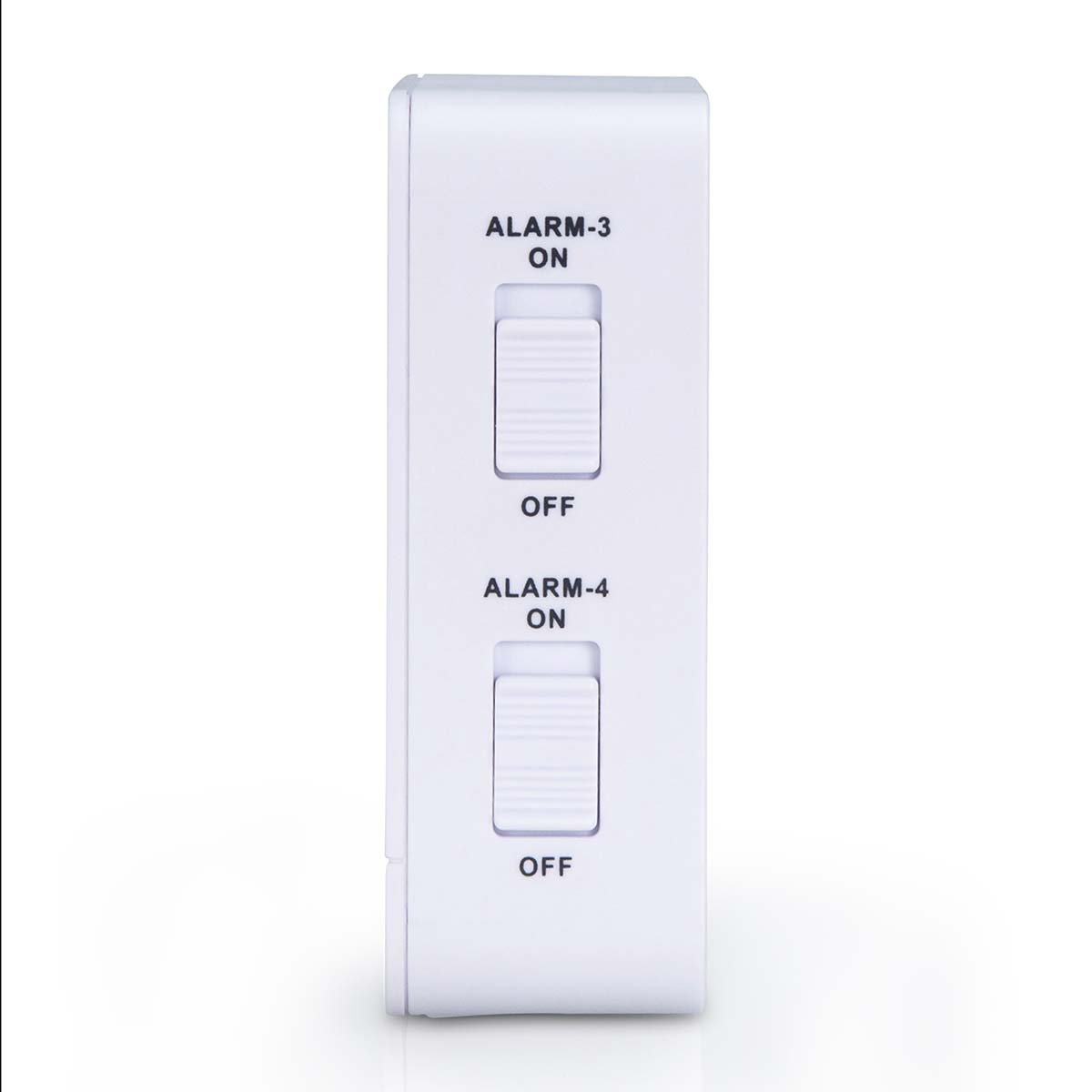 DCF-klokken med temperatur er spesielt nyttig når den brukes som vekkerklokke. Den er utstyrt med en funksjon for å legge inn fire forskjellige alarmtider. Hvis du for eksempel ønsker å legge deg, har den en innstilling for én gang. Alarmen som du hører ved de ulike vekketidspunktene, kan utsettes i noen minutter med en snooze-funksjon. En herlig følelse: snu deg rundt en stund uten å være redd for å forsove deg. Vekkerklokken er utstyrt med automatisk displaylys, slik at du enkelt kan betjene og lese av alarmen, selv om natten i mørket.