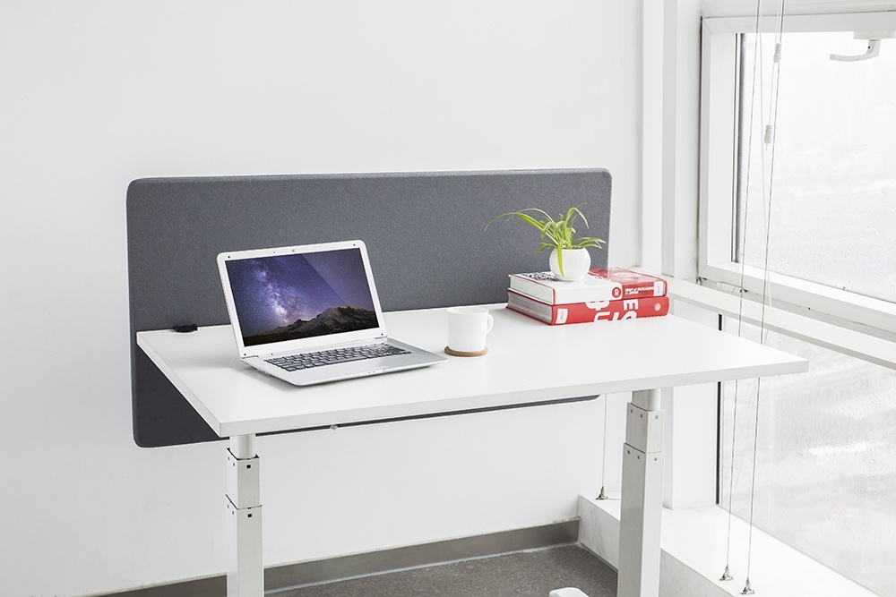 DELTACO OFFICE Akustisk stoffkledt frontpanel/avskjerming til skrivebord, 1200 x 600 mm, grått