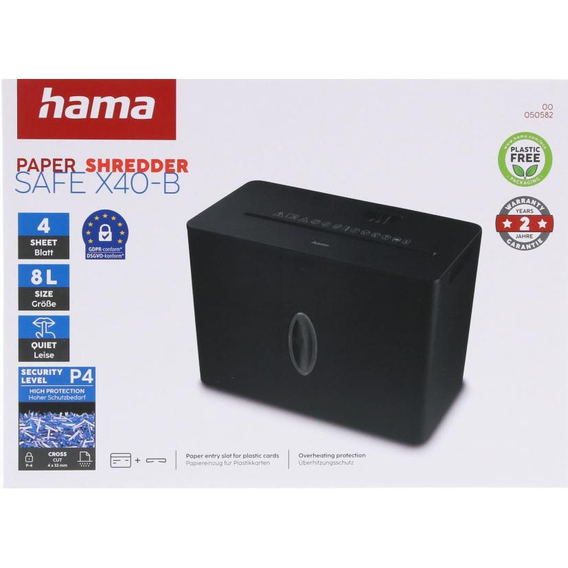 Denne makuleringsmaskinen fra Hama sørger for GDPR-kompatibel datadestruksjon med sikkerhetsnivå P4.
