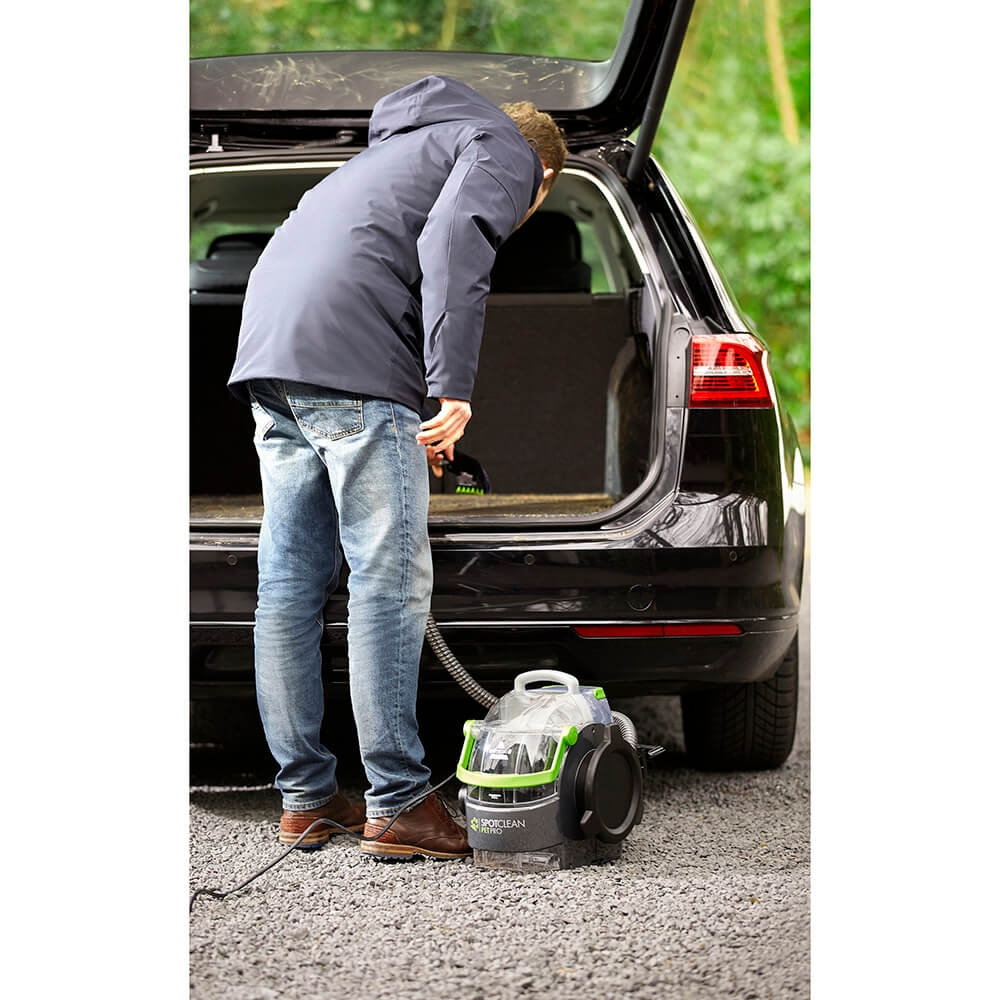 BISSELL SpotClean Pet Pro hjelper med å fjerne flekker fra nesten alle teppebelagte overflater ved bruk av vann, BISSELL-løsning og håndholdte rengjøringsverktøy med kraftig sug.