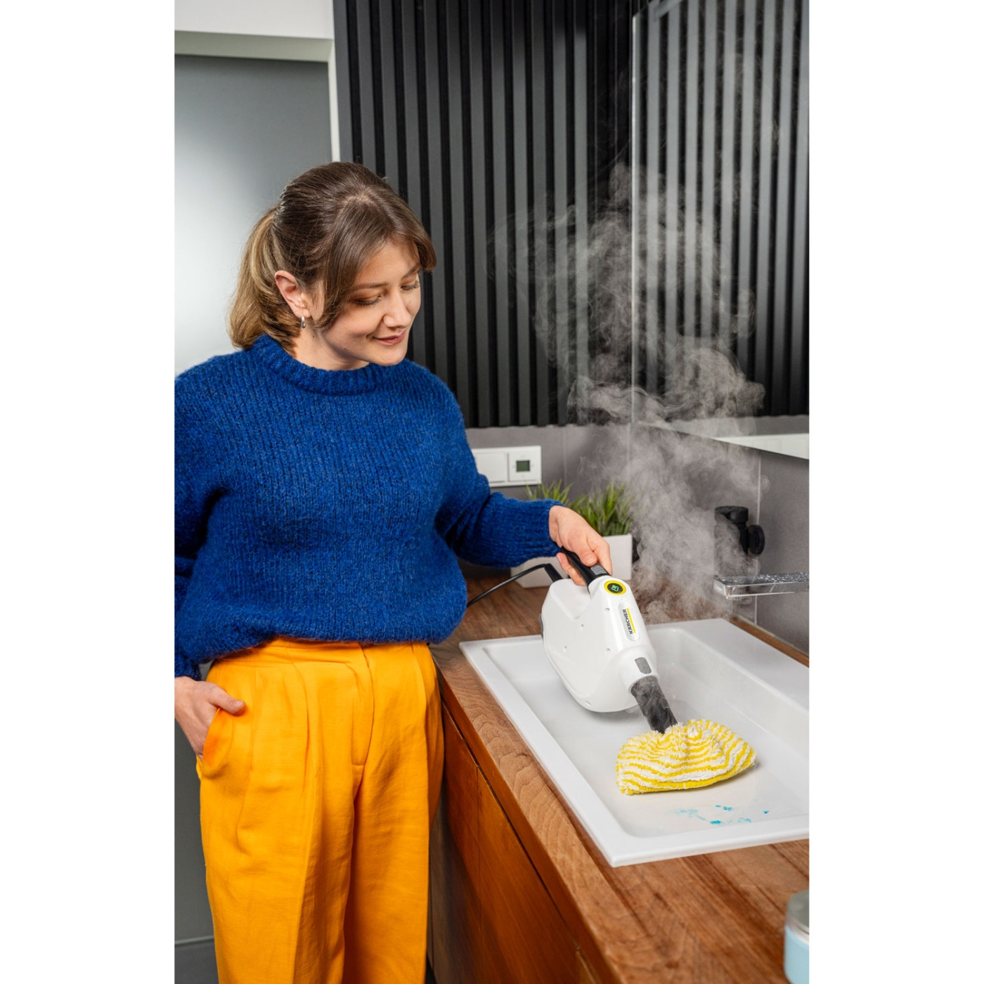 Den kompakta handhållna ångtvätten SC 1 Multi Comfort rengör utan kemikalier och är redo för djupgående rengöring på ett ögonblick