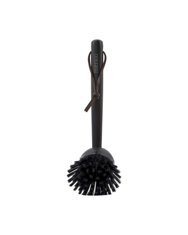 This dish brush from Meraki is the perfect companion for your dish soap. Made of bamboo, it has been given a black stain that lets the wood grain shine through. The handle gives you a comfortable grip while the brush itself is replaceable to prolong the longevity of the dish brush. When you are done using the dish brush, simply hang it on a hook thanks to the strap. Because of the nature of the black stain, the colour might fade over time. Size: l: 22 cm, w: 8 cm. Material: Bambus, PP
