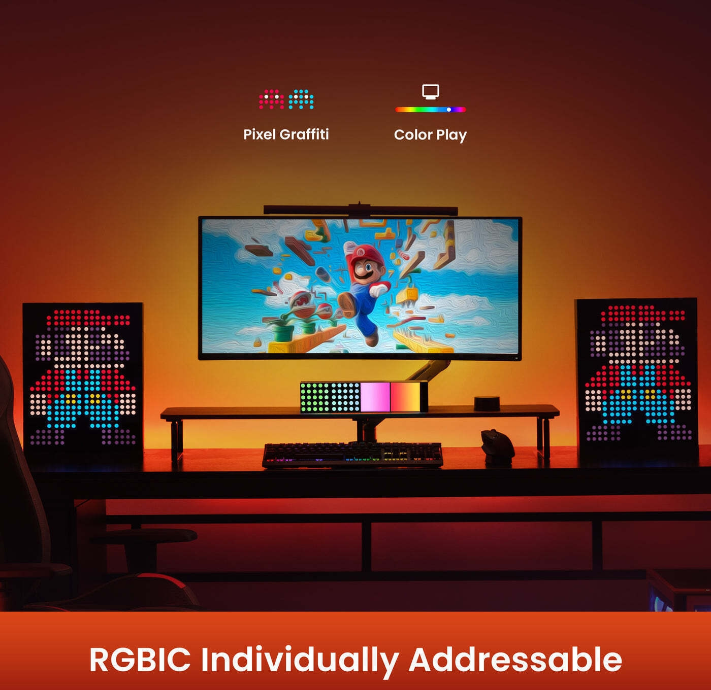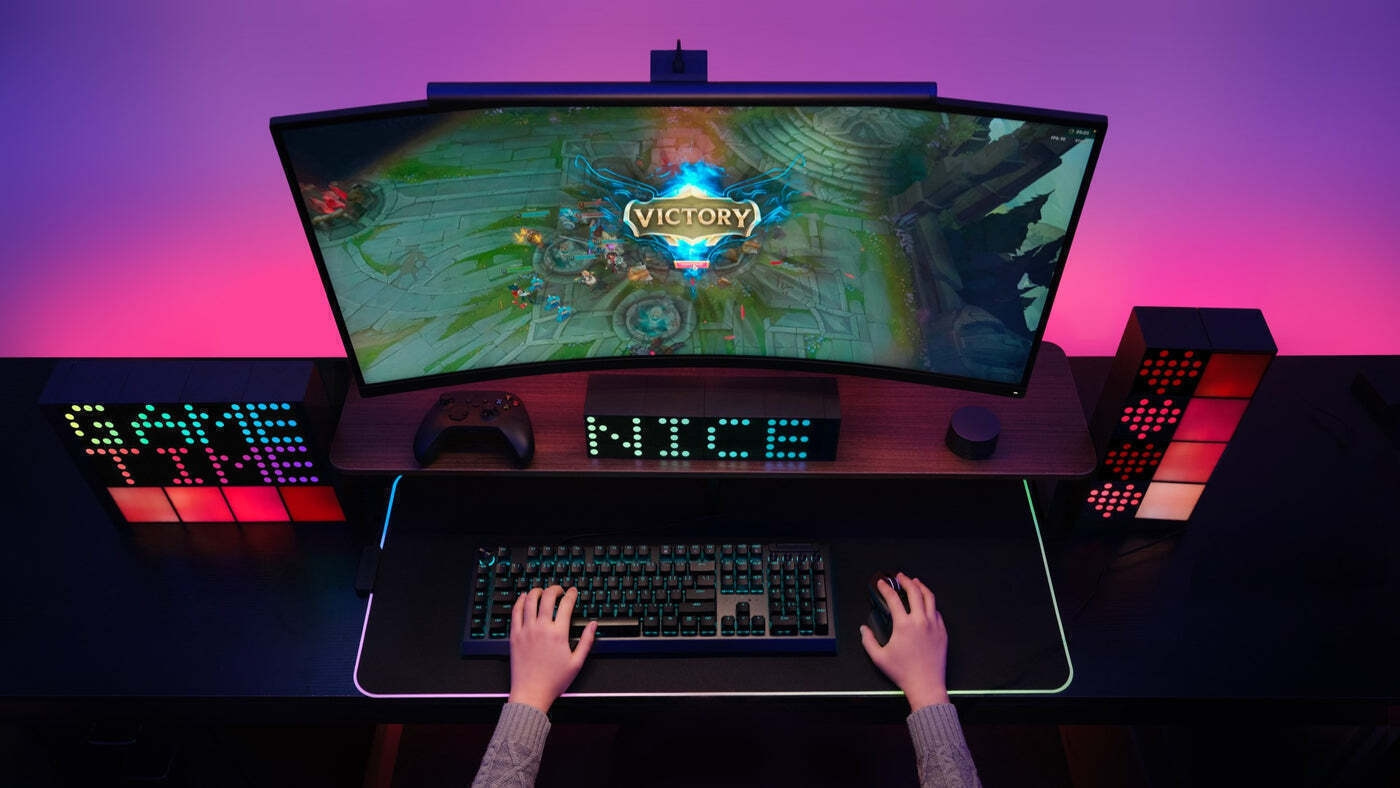Synkronisering med spillet og musikkenLyset kan konfigureres til å fungere i henhold til hendelsene i videospill, for eksempel gjennom Razer Chroma-kompatibilitet. I tillegg kan lyset stilles inn til å reagere på musikkens rytme som en stemningsskaper.