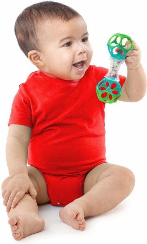 OballEn fargerik rangle med minikuler i endene, klar til å leke med. Den glatte, myke overflaten og de fleksible åpningene er ideelle for små fingre å gripe om. Leken kan ristes og tygges på, og den inneholder ikke BPA eller andre skadelige stoffer. De regnbuefargede rangleperlene er en fryd for små øyne og gir fra seg en lyd når de ristes. Leken kan holdes i hendene eller rulles rundt på gulvet. Lett å ta med seg i barnevognen eller babybagen.