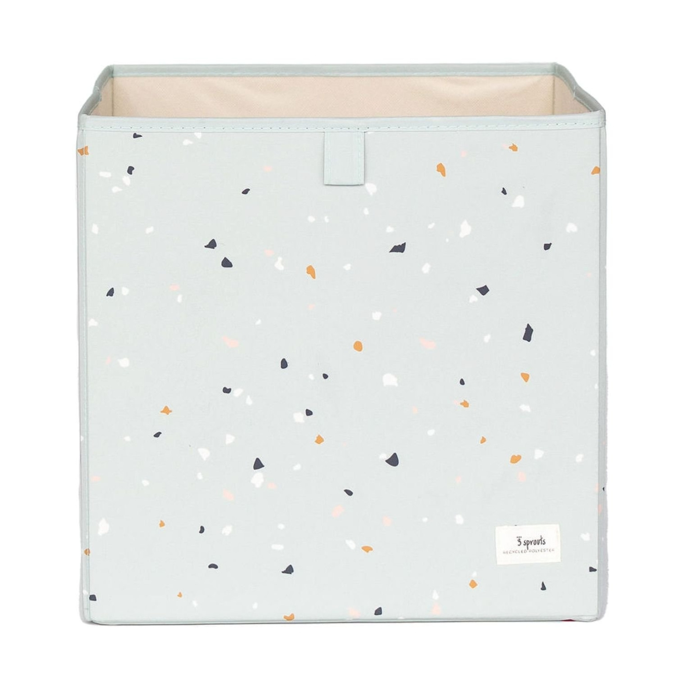 Oppbevaringsboksen er laget av papp dekket med stoff.