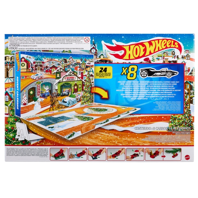 Hot WheelsTell ned til julaften med ®! Farger og dekorasjoner kan variere.