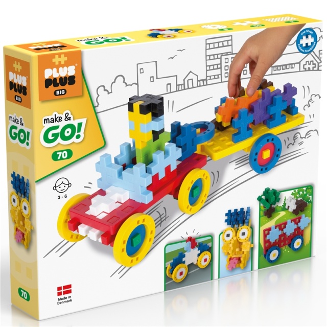 Plus-Plus BIG Make & GO gir barnet ditt alt det trenger for å komme i gang med å bygge morsomme kjøretøy med Plus-Plus BIG. Det nye Plus-Plus BIG-hjulet åpner for nye muligheter når barnet utforsker bygging og lek med Plus-Plus BIG.