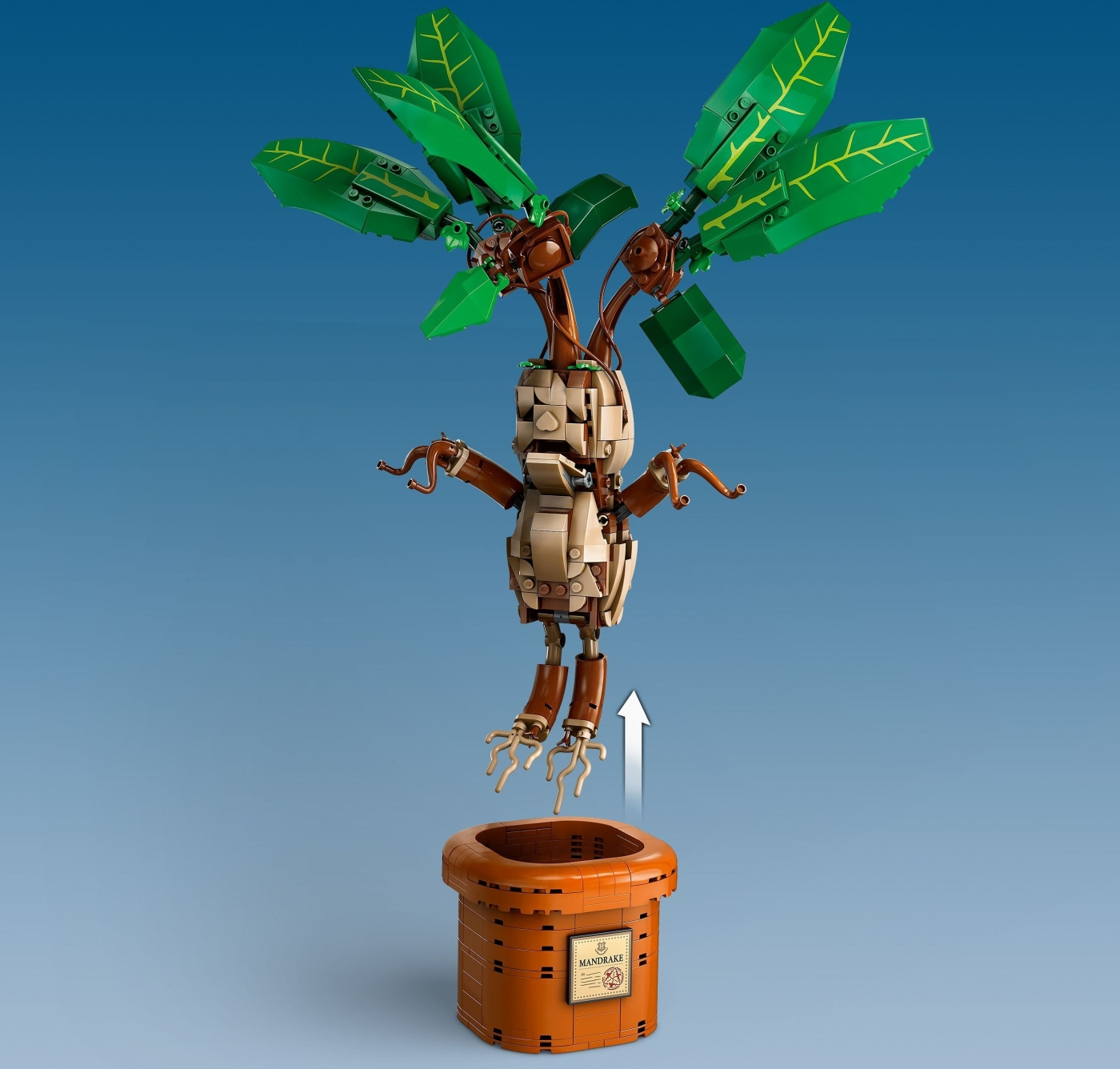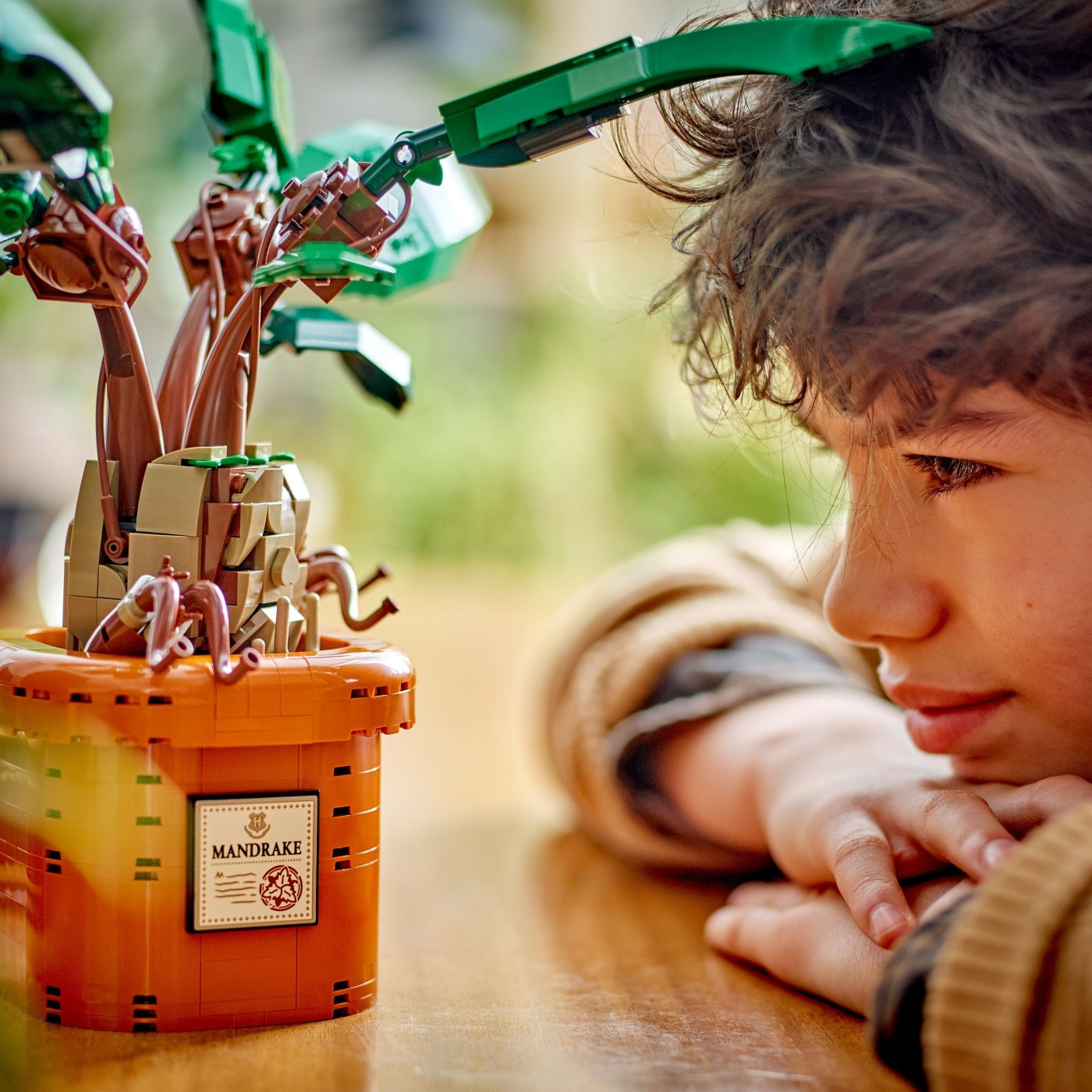 - Magien til en plantefigur - Den skrikende planten fra Harry Potter™-historiene er en flott dekorasjon med sin byggbare potte, og alrunen kan også løftes ut av potten for å leke