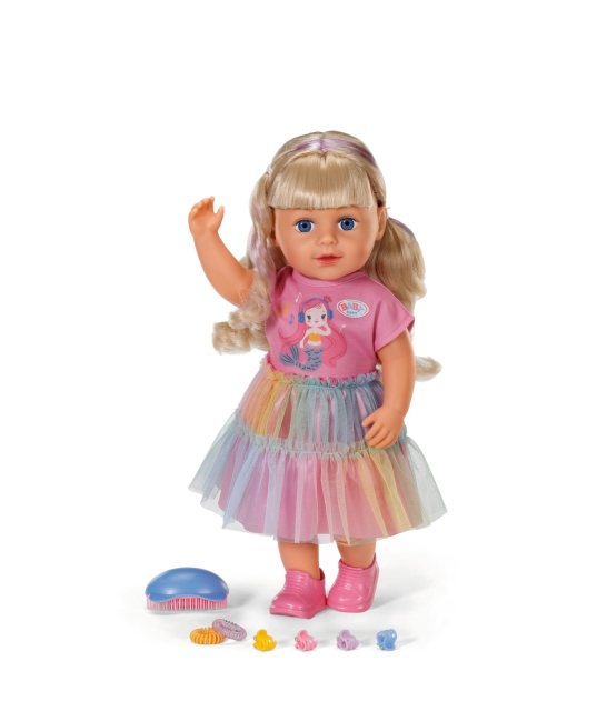 Carla er kledd for å imponere i et livlig antrekk med et fargerikt tyllskjørt og en elegant t-skjorte, perfekt kombinert med stilige sko. Antrekket hennes er ikke bare iøynefallende, men også designet for å være lett å ta av og på, slik at små fashionistaer kan mikse og matche med andre «BABY Born»-antrekk i samme størrelse.