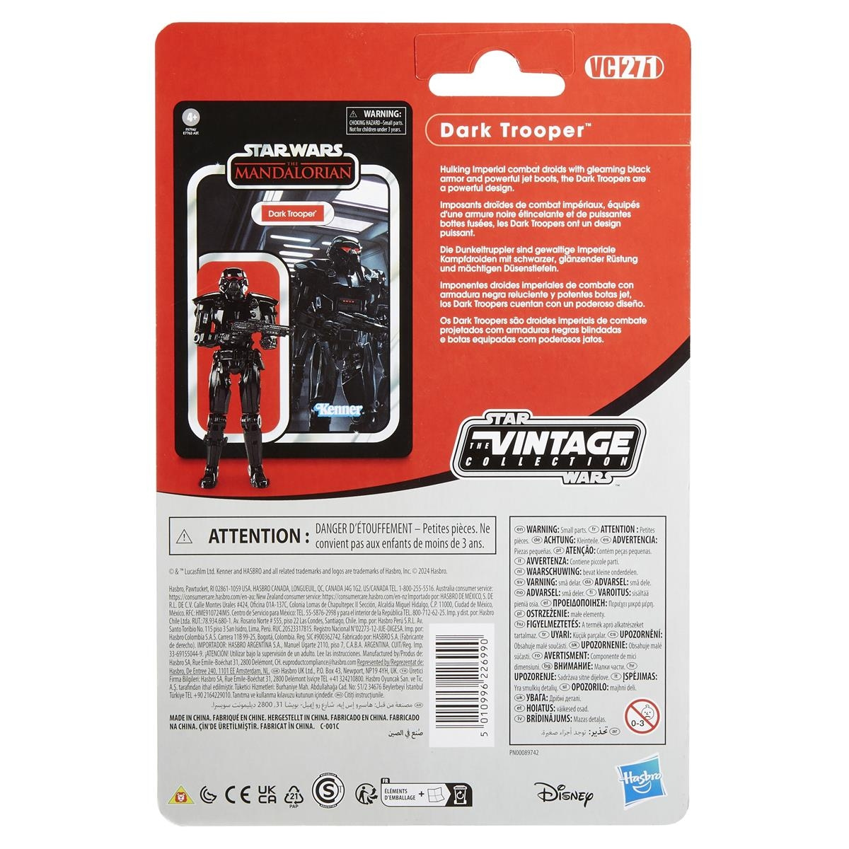 Emballasjen har Kenner-inspirert cardback-design, som minner om de originale vintage-lekene fra 1970- og 1980-tallet, komplett med et unikt VC-nummer for ekstra samleregenskaper. Disse store keiserlige kampdroidene, kjent for sin skinnende svarte rustning og kraftige jetstøvler, er et slående tilskudd til enhver Star Wars-scene. Figuren passer for barn fra 4 år og oppover, og er en flott gave til både samlere og fans. Vær oppmerksom på at den inneholder små deler og ikke er egnet for barn under 3 år på grunn av kvelningsfare.