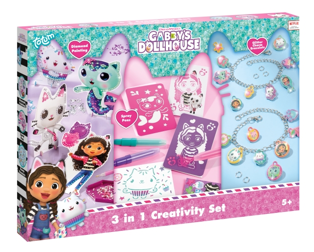 Gabbys dukkehus 3 i 1 kreativt sett som inneholder diamantkunst, tusjpenner og et armbånd med anheng.
