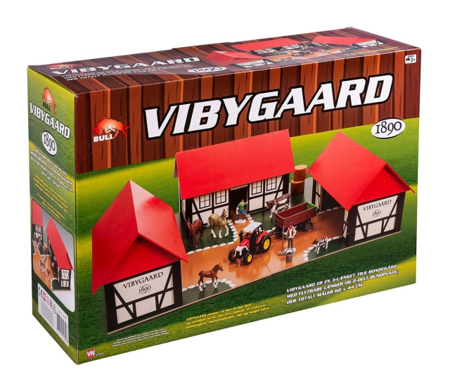Bondegård i tre. Med todelt bunnplate på 60x44 cm. Uten tilbehør.