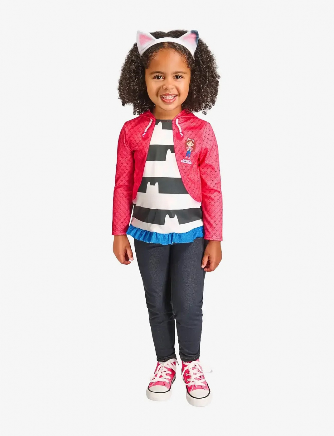 Dette søte Gabby's Dollhouse-settet med topp og pannebånd er perfekt for de minste i alderen 3-4 år. Settet inneholder en komfortabel, stilig topp med lekent design og et matchende pannebånd for å gjøre looken komplett.