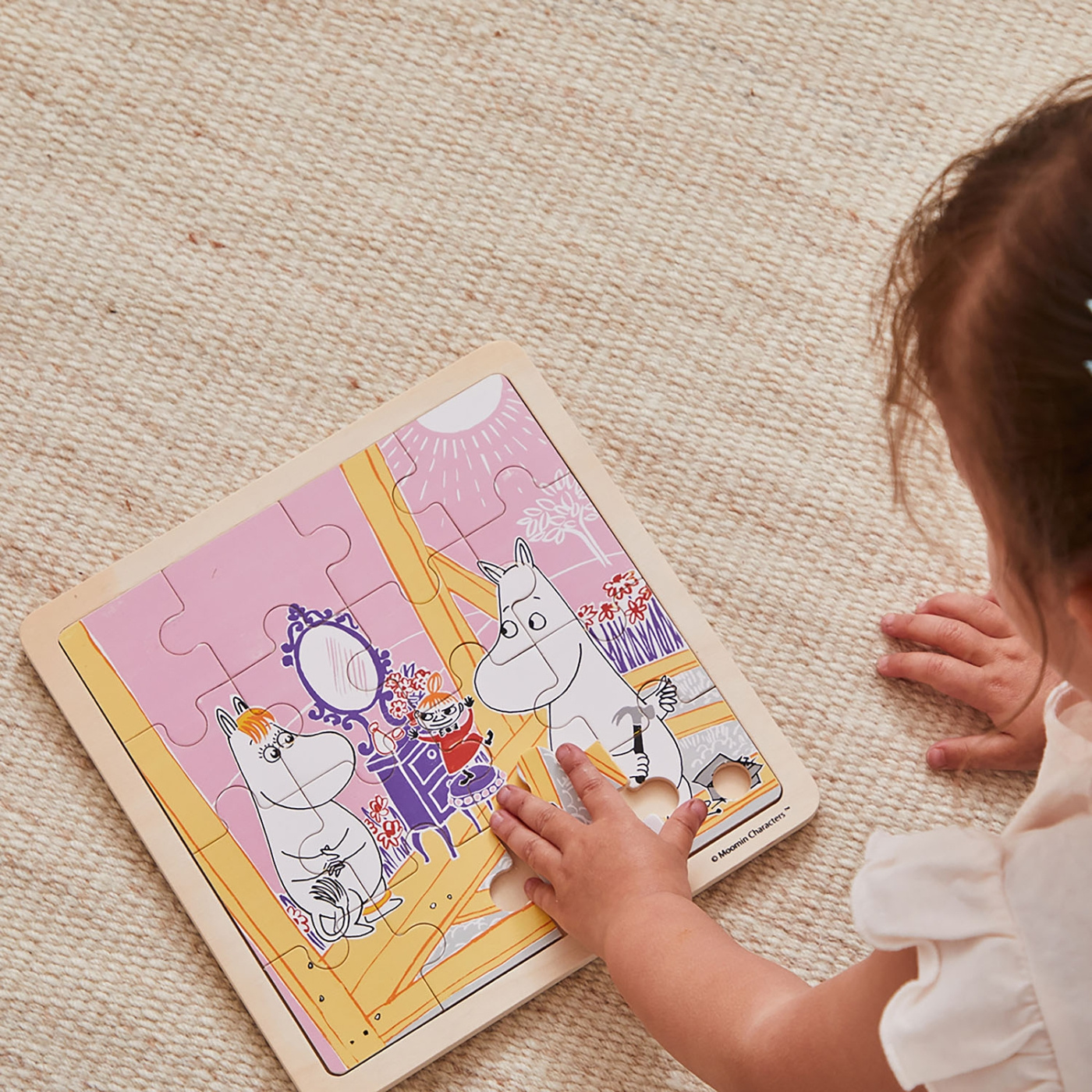 Dette sjarmerende trepuslespillet fra Moomin har et herlig hoppende Moomin-motiv.