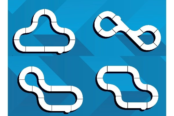 Du kan bygge 4 forskjellige banelayouter og oppleve vanskelighetsgraden på hvert banelayout.