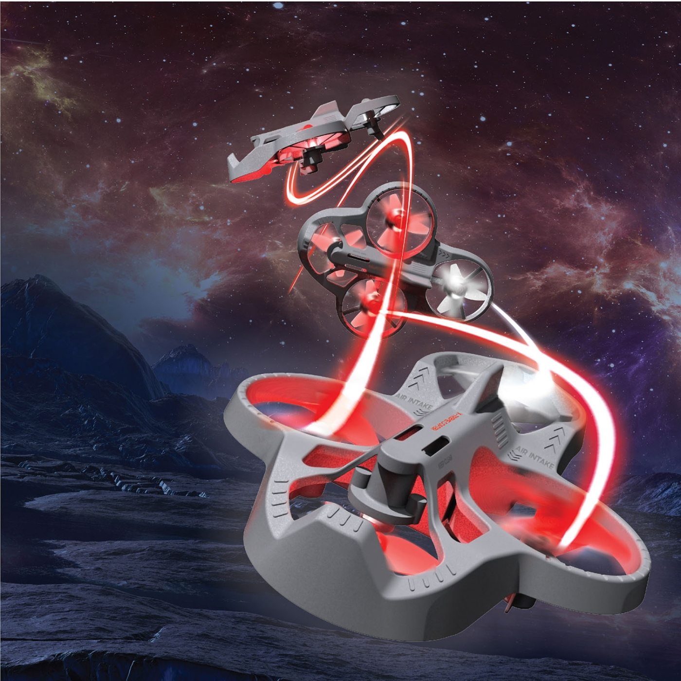 Lyssterke LED-frontlykter gjør det mulig med spennende nattflyvninger, noe som øker synligheten og gjør det enda morsommere. Dronens slitesterke konstruksjon sikrer at den tåler daglig bruk, mens den kompakte størrelsen gjør den perfekt for reise og egnet for både innendørs og utendørs flyvninger.